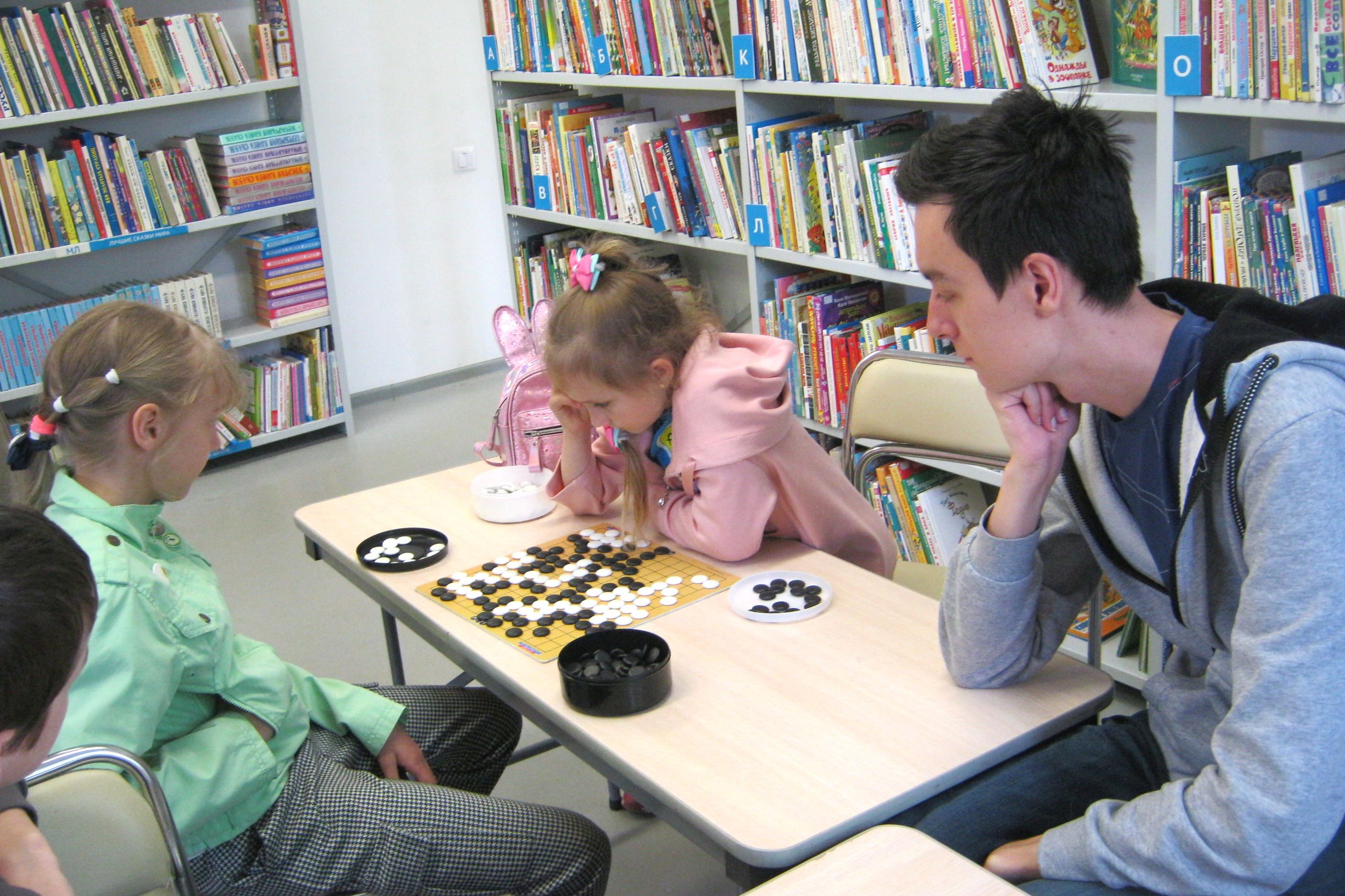 Читатели библиотеки продолжают приходить играть по четвергам с тренером в игру Го, секция которой открылась 4 года назад и по сей день имеет большую популярность и привлекает новых игроков. Так же в библиотеке имеются другие разнообразные настольные игры – шахматы и шашки, в которые с удовольствием приходят поиграть дети каждый день, особенно, во время летних каникул.