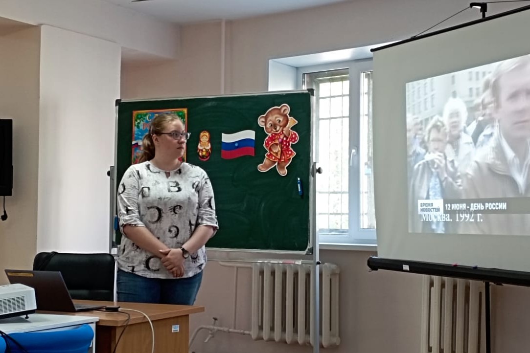 12 июня по всей стране отмечали государственный праздник День России. В честь этого знаменательного события библиотека № 21 в очередной раз посетила Центр русского языка и культуры, чтобы рассказать об истории этого праздника и главных символах страны: флаге, гербе и гимне.