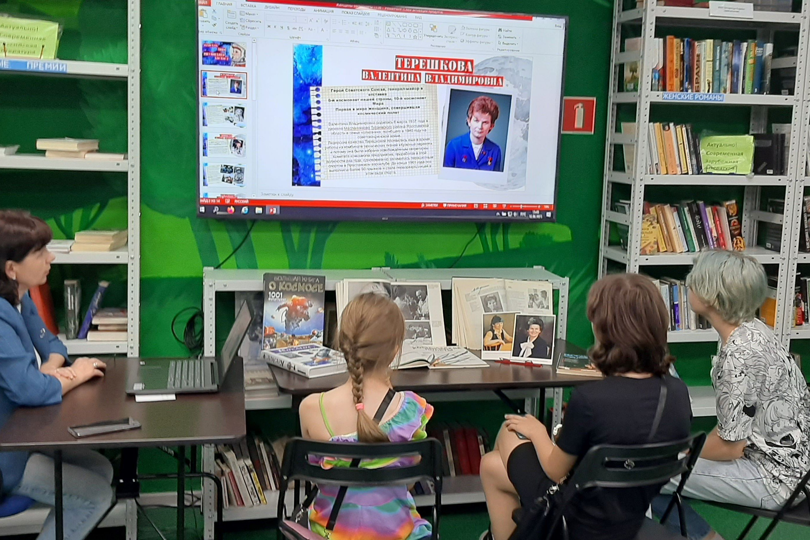 16 июня в детской библиотеке № 7 проведен познавательный час для ребят из пришкольного лагеря МБОУ ДОД «ЦРТДиЮ». Мальчишки и девчонки услышали рассказ о том, что именно Валентина Терешкова была не просто первой российской космонавткой, но и первой вообще. Далее познакомились со Светланой Савицкой — первой женщиной, совершившей выход в открытый космос, Еленой Кондаковой — первой женщиной в мире, совершившей длительный полет в космос. Узнали о женщине-космонавте, нашей землячке из Уссурийского района Приморского края Елене Серовой. Потом дети отгадывали космические кроссворды и даже «полетели в космос» с помощью популярной игры «Я — ракета».