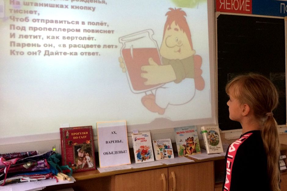 Ребята по очереди читали веселые стихи о варенье и отрывки из рассказов Николая Носова и Геннадия Снегирева, вспомнили Карлсона и его любимое лекарство, а потом «прогулялись по саду» с книгой Елены Ракитиной и узнали, что малину на Руси называли «медвежьей ягодой». Эти вкусные сладкие ягоды любят белки, суслики, ежи и даже волки…