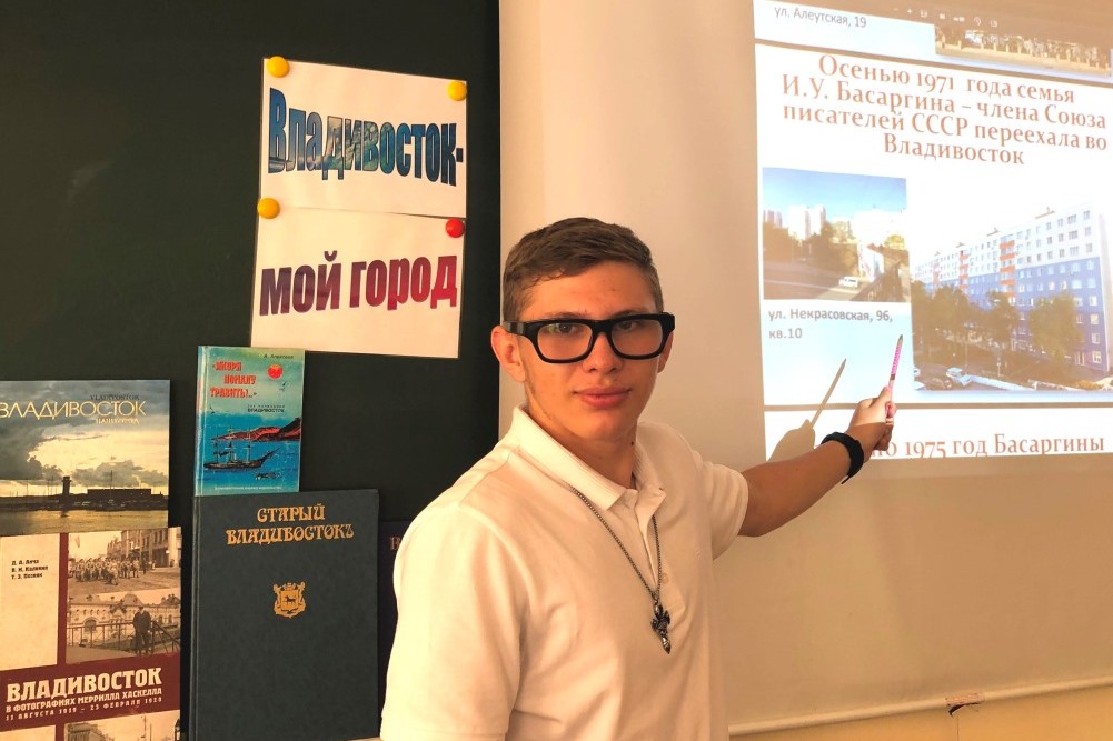 Учащихся 11 класса МБОУ «СОШ № 64» в рамках «Всероссийской недели истории Владивостока» совершили виртуальное путешествие по родному городу, которое началось с занимательного рассказа о людях, которые сыграли важнейшую роль в становлении и развитии Владивостока, памятниках архитектуры, памятниках и памятных местах, связанных с воинской славой нашего Отечества.