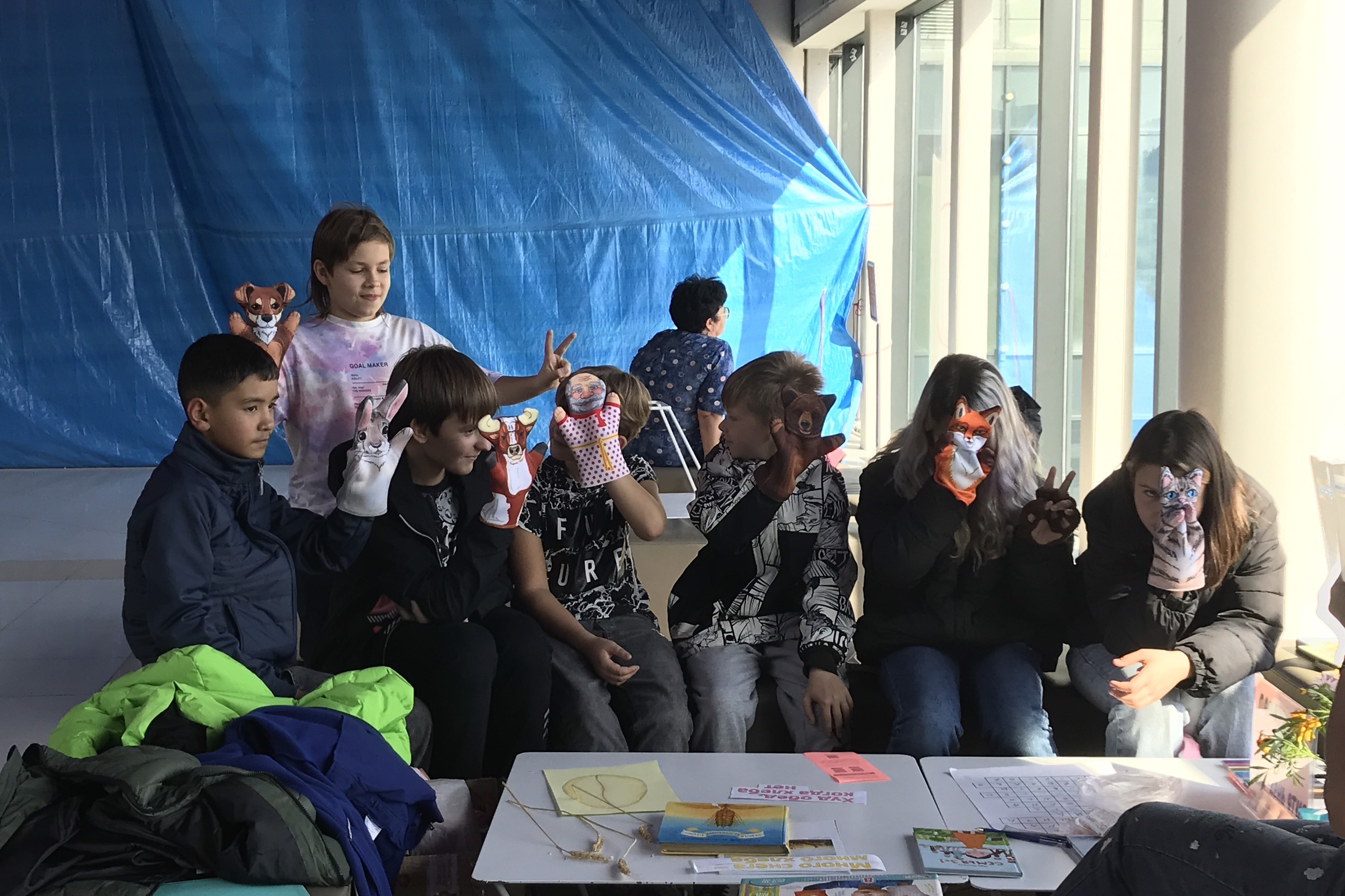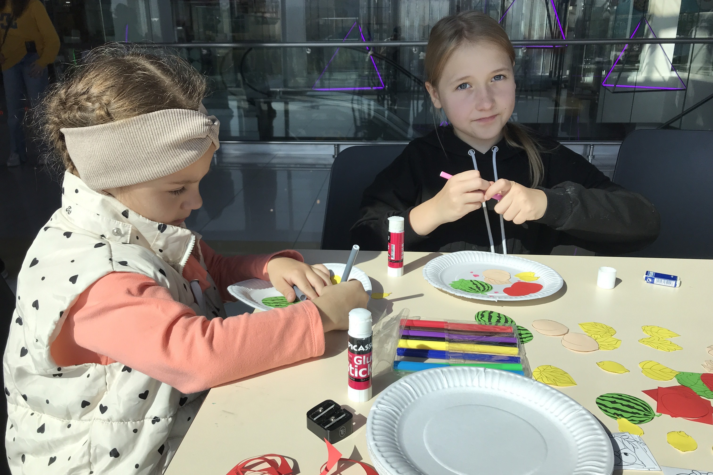 Для детей и подростков мастер-класс как всегда на первом месте. Здесь раздолье самое веселое, яркими красками осени дети наполняли бумажные тарелки фруктами, цветами, листиками и даже тигр оказался в своем оранжевом наряде вполне кстати. Играли в театр, вспоминая кто из какой сказки пришёл, и как разных зверей можно объединить в одном сюжете. Знакомились с книгами о России, листали страницы сказок, забавно изображали звуки тайги от песен цикад, до тигриного рыка.