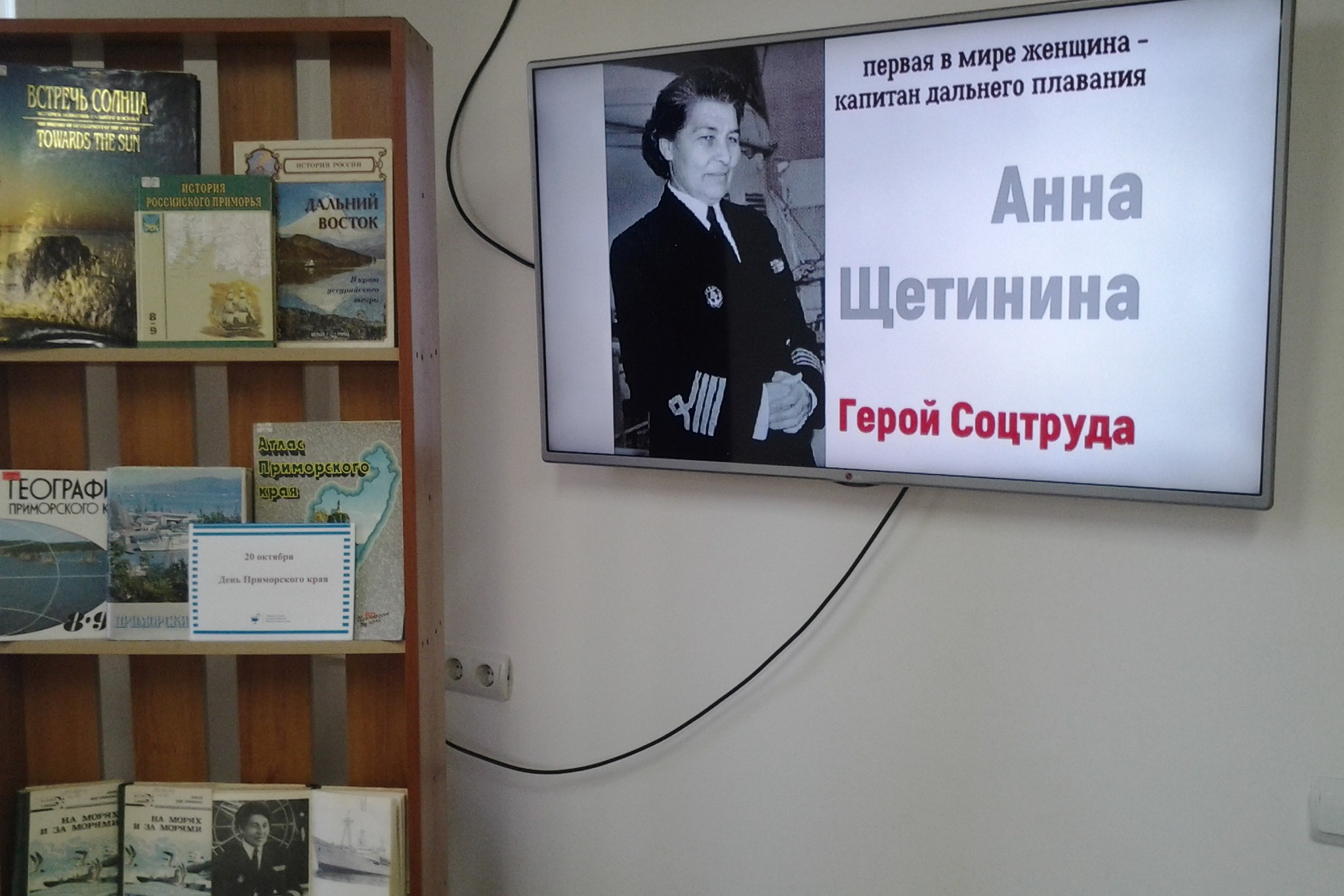 Девятиклассники смогли познакомиться с историей её нелёгкого труда и посмотреть выставку, на которой была представлена знаменитая книга «На морях и за морями», автором которой и являлась Анна Ивановна. За годы плавания Анна Щетинина многое повидала, многое испытала, со многими людьми встречалась. Вот об этом и рассказывает в своей книге. Ее называли лицом эпохи, символом морей, суровым шкипером. Капитан, орденоносец, образцовый руководитель – такой была Щетинина. «Она строга, но справедлива» когда – то говорили о ней журналисты. Она была не только капитаном, но и прекрасным педагогом, ведь после войны преподавала в институтах Ленинграда и Владивостока, участвовала в съездах и конференциях. Об этой женщине писали все газеты мира. Это было невероятное событие — ещё ни разу в мире женщина не становилась капитаном дальнего плавания. За её первым рейсом следили внимательно, но капитан Щетинина уверенно развеяла все сомнения и суеверия, связанные с пребыванием женщины на корабле. По стопам Анны Ивановны морской профессии посвятили себя многие девушки.