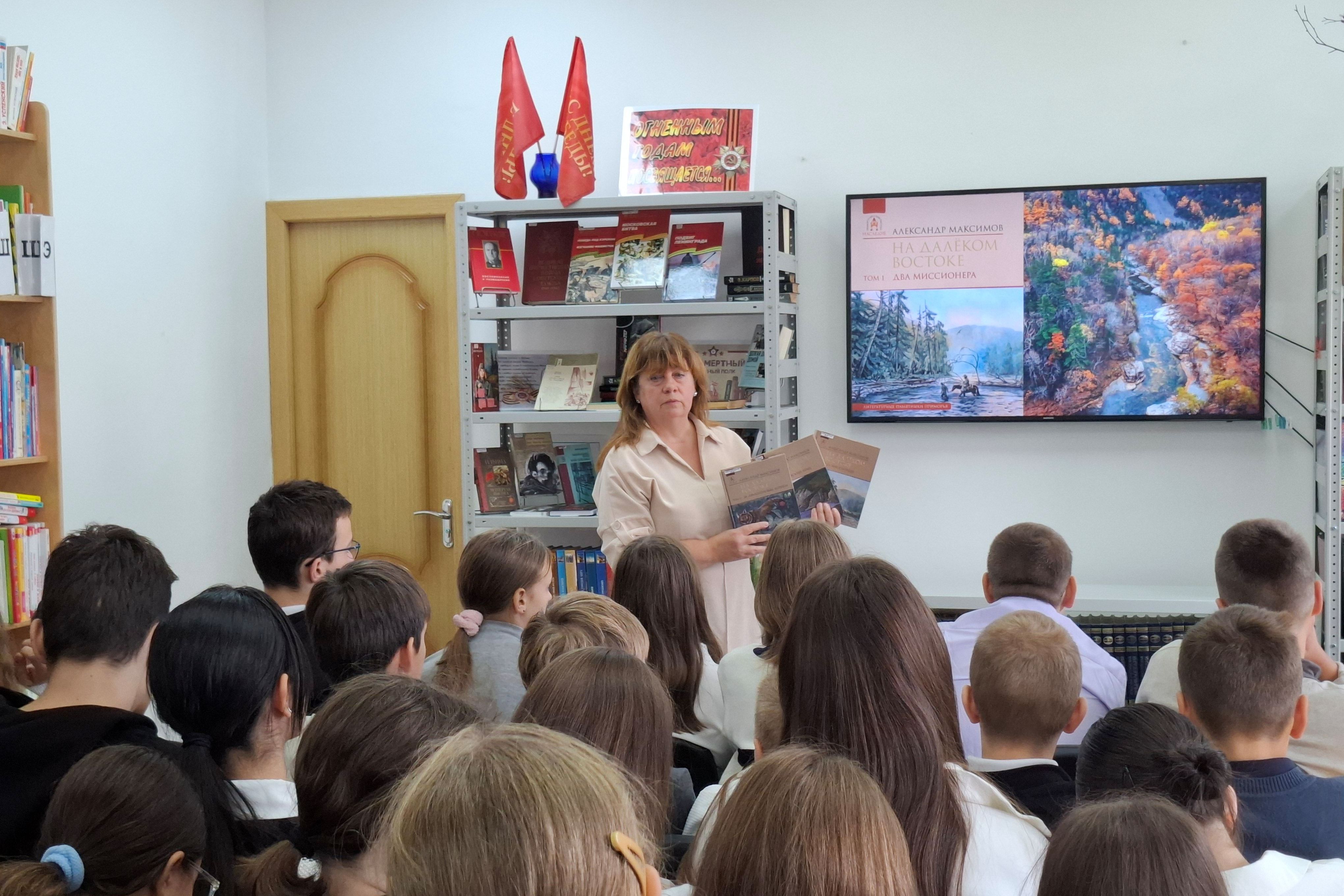 Сотрудники библиотеки рассказали ребятам о том, что известный в прошлом литератор Александр Яковлевич Максимов нашел во Владивостоке свой последний причал, оставив на память потомкам интереснейшие наблюдения о Дальнем Востоке. Именно его рассказы, повести и очерки стали для российского читателя второй половины XIX века первыми печатными источниками, по которым можно было сложить представление о жизни на далекой окраине, только-только осваиваемой русскими людьми. Однако до недавнего времени произведения писателя практически пребывали в забвении. Восполнить этот пробел и вернуть имя автора в литературный процесс призвано подготовленное в рамках Губернаторской издательской программы собрание сочинений А.Я. Максимова в 3 книгах.
