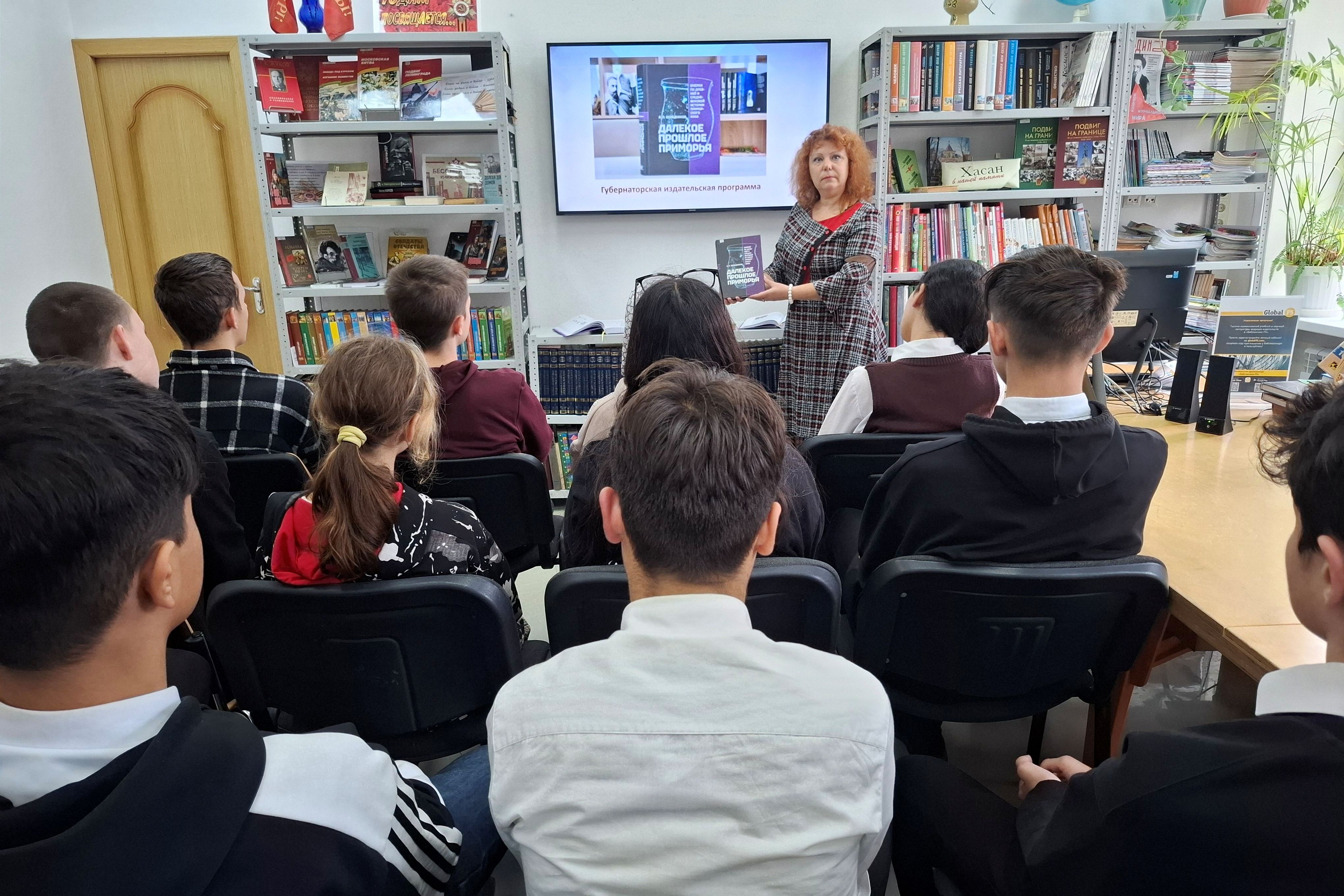 В рамках краевого просветительского проекта «Как пройти в библиотеку!?!» в библиотеке № 16 (ул. Котельникова, 20) для учащихся 6-х и 10-х классов СОШ № 43 состоялась презентация книги писателя Александра Яковлевича Максимова «На далеком Востоке», а для учащихся 9 – х классов Основной общеобразовательной школы № 1, презентация книги Алексея Павловича Окладникова «Далекое прошлое Приморья: очерки по древней и средневековой истории Приморского края», изданных в рамках Губернаторской издательской программы.