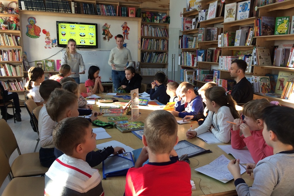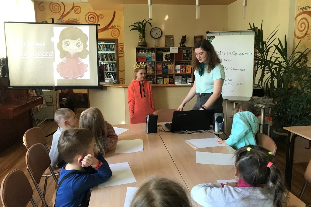 На библиотечных занятиях в «Английском уголке» царит творческая и свободная атмосфера, что позволяет ребятам активно общаться и играть на иностранном языке, знакомиться с новыми словами и предложениями.