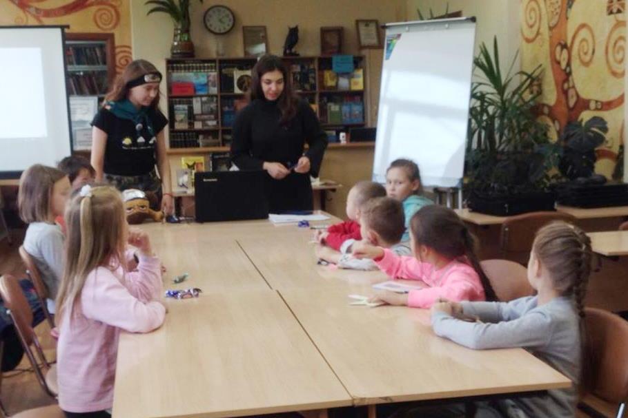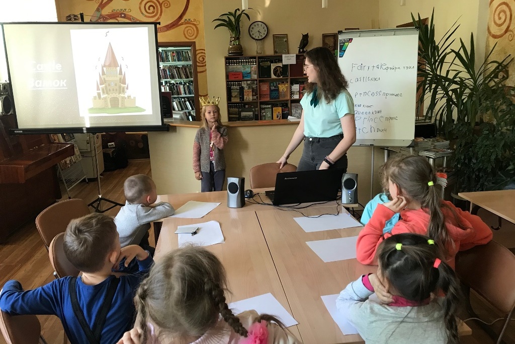 На библиотечных занятиях в «Английском уголке» царит творческая и свободная атмосфера, что позволяет ребятам активно общаться и играть на иностранном языке, знакомиться с новыми словами и предложениями.
