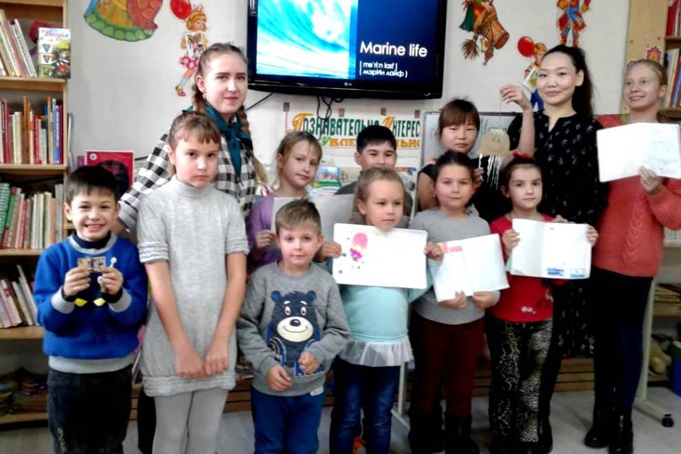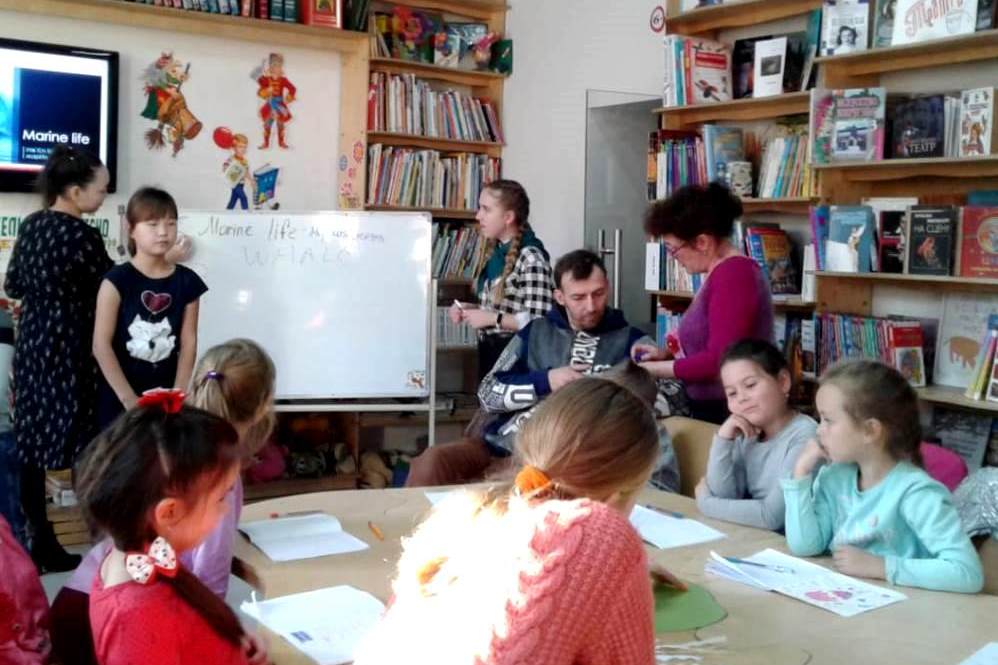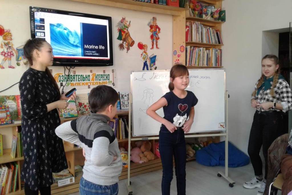9 ноября темой занятия в детской библиотеке №7 была интересная морская жизнь. Дети теперь знают, как по-английски сказать такие слова, как дельфины, морские звезды, медузы, осьминоги, морские ежи. Для лучшего запоминания посмотрели мультфильм про животных, как семья акул охотилась за рыбками. А потом весело играли в игру, и каждый пытался изобразить морское животное, а все остальные отгадывали его, называя на английском языке.