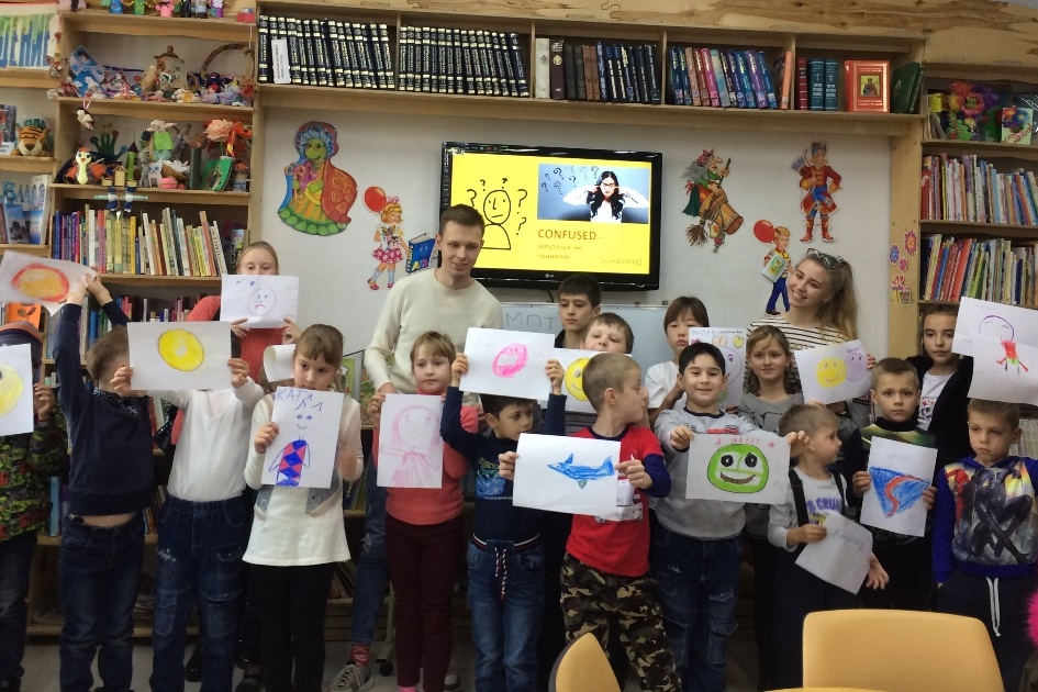 16 ноября библиотека была просто переполнена детьми! А знакомились в этот раз со словами по теме: эмоции человека. Играли в необычную игру, когда под столом нужно было найти тишину. Потом все вместе с помощью игры «сходили» в зоопарк, а затем каждый нарисовал, как он себя в данный момент чувствует, выразив эмоции на бумаге и используя выученные слова.