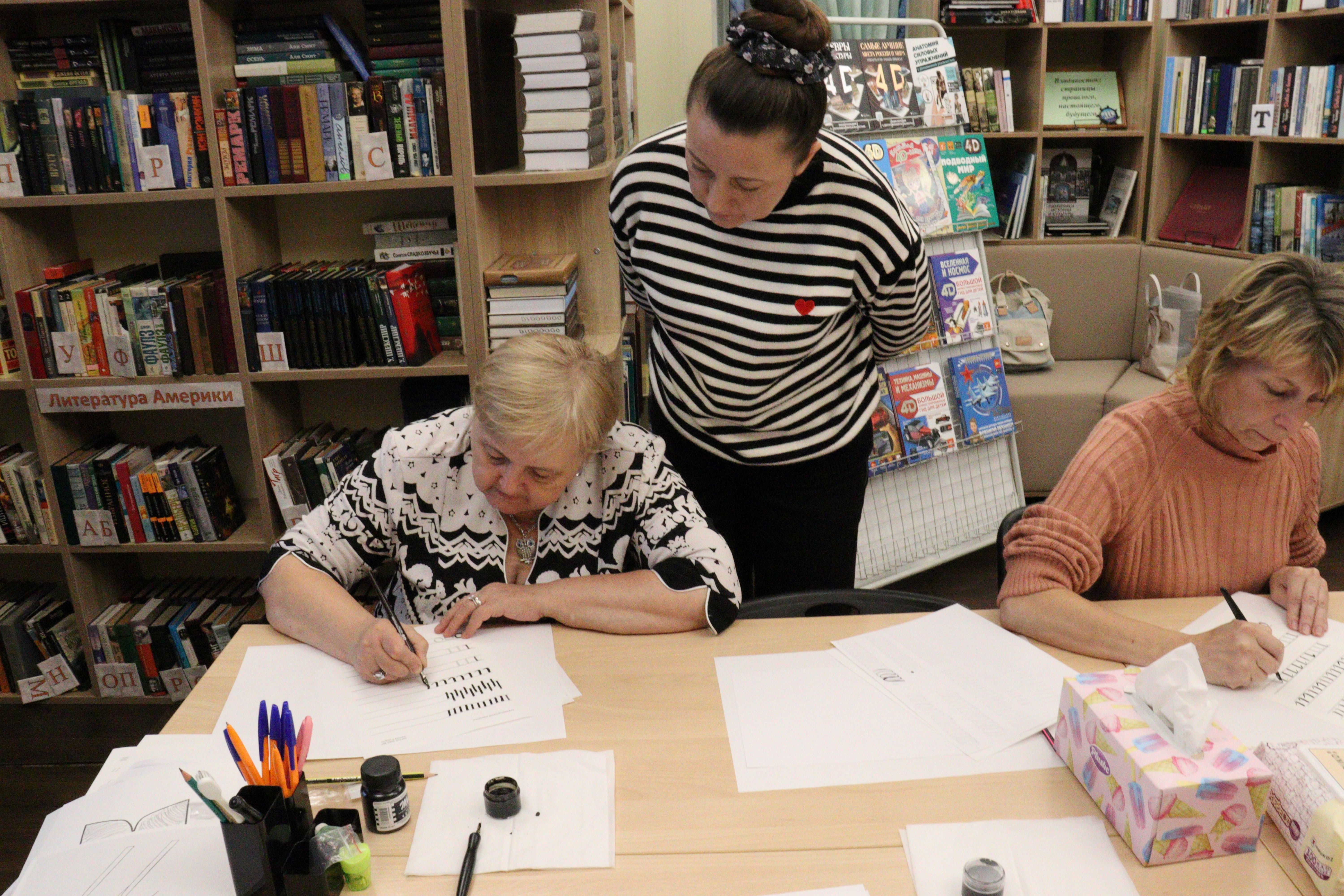 16 ноября в библиотеке № 4 проведен мастер-класс по каллиграфии для сотрудников библиотечной системы Владивостока. Искусством красивого и чёткого письма называют каллиграфию. Несомненно, аккуратное начертание букв тренирует и воспитывает усидчивость, наблюдательность, глазомер, развивает творческий потенциал, фантазию, формирует красивое написание букв и в целом почерк.