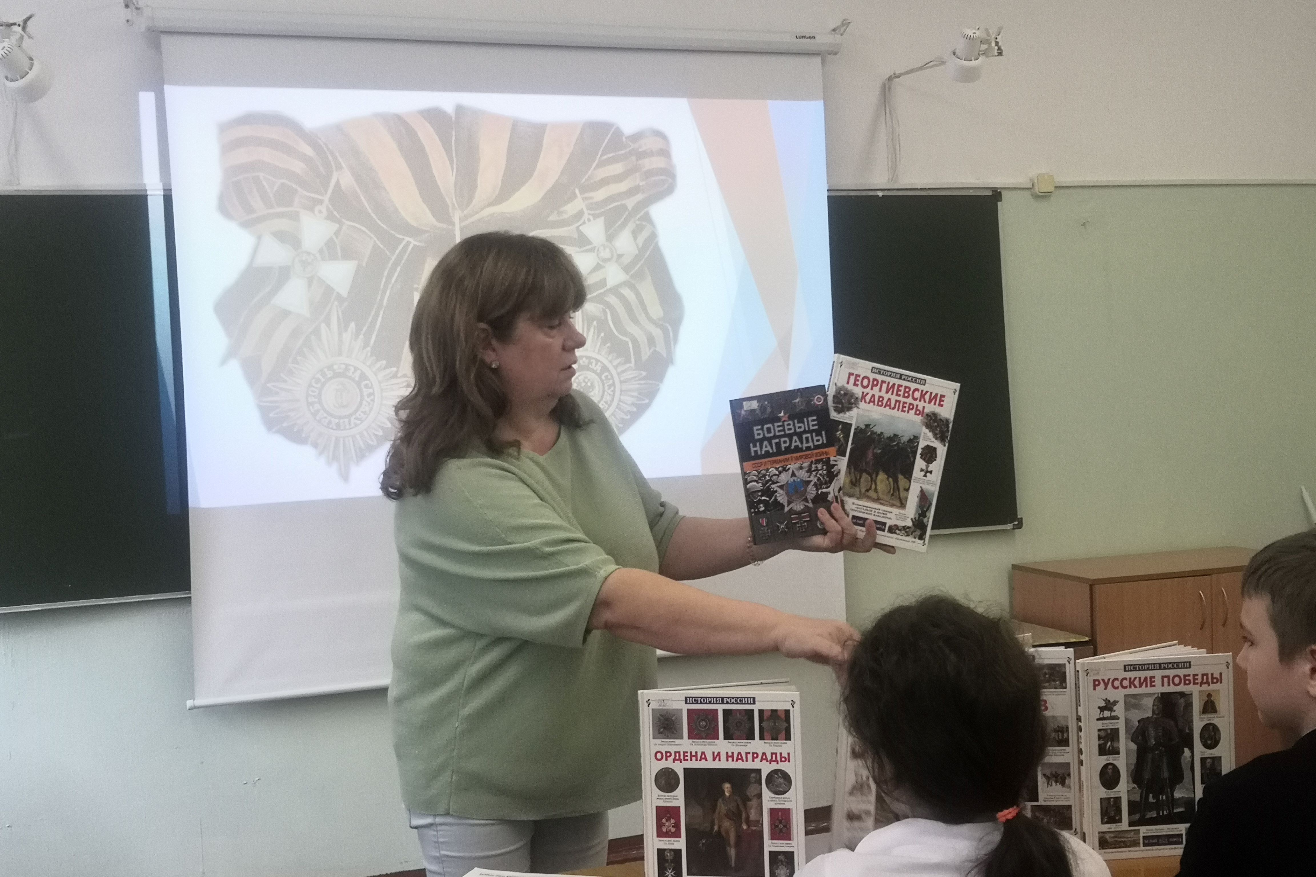 26 ноября 1769 года (255 лет назад) императрицей Екатериной II была учреждена высшая военная награда Российской империи за боевые заслуги — орден Святого Георгия. О знаменитой российской награде и героях, удостоенных высокой чести носить ее на груди, узнали учащиеся 6 «А» класса СОШ № 43 во время исторического часа «За службу и храбрость». Мероприятие организовано библиотекой № 16 по запросу преподавателя школы.