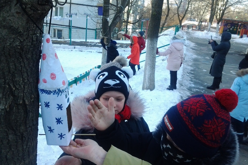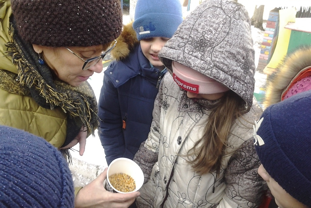 Закончился экологический час кормлением птиц и пополнением кормушек вкусным и питательным зерном. Каждый из нас может помочь птицам пережить суровую зиму и тогда птицы, весной подарят нам звонкие трели. Покормить птиц – это способ проявить человечность и стать добрее.