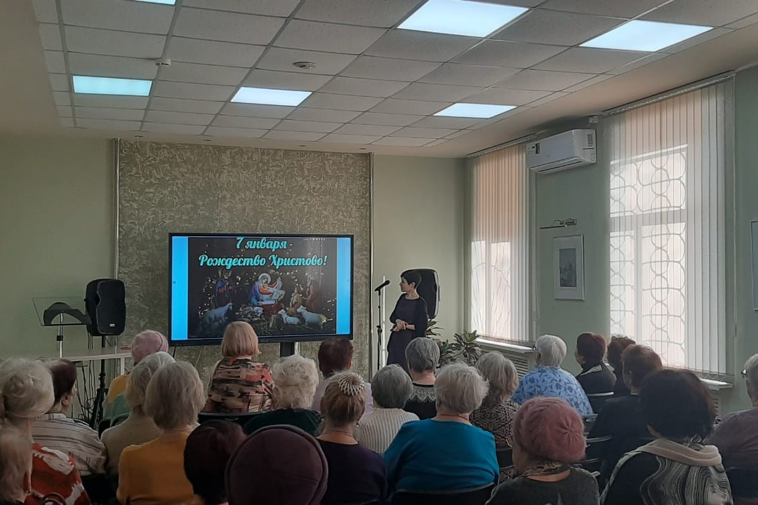 Праздничный калейдоскоп «От Рождества до Крещения» для читателей старшего возраста организовали сотрудники библиотеки им. Н.Н. Муравьева-Амурского. Участники общественной организации «Союз пенсионеров России» – частые гости мероприятий и активные читатели библиотеки. Каждый месяц их ждут интересные просветительские беседы, организованные сотрудниками библиотеки, встречи со специалистами из медицинских и социальных учреждений. Первая встреча в наступившем году была посвящена череде январских праздников – новому году, Рождеству, Крещению, святочным гуляниям и другим интересным зимним событиям. Просмотр слайдов презентации, сопровождался чтением стихов и произведений в жанре «святочного рассказа». Читатели с интересом познакомились с интересными фактами, связанными с праздниками. Например, что новый год в России можно встретить 11 раз, первыми елочными украшениями были яблоки. Узнали, что такое «козули», что делает Дед Мороз в разное время года, что такое «святые» и «страшные» вечера, какие праздничные традиции существуют у разных народов России.