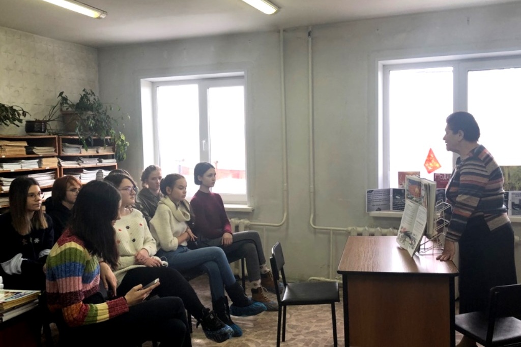 19 февраля шестиклассники школы №18 пришли на час мужества в библиотеку №3. Вспомнили историю праздника, зачитали отрывки из книги А.В. Суворова «Наука побеждать». Основное внимание уделили героям Великой Победы: летчику Н. Гастелло, снайперу, гвардии рядовому Л. Павличенко, красноармейцу А. Матросову, партизанке З. Космодемьянской, подводнику А. Маринеско, знаменитому летчику А. Маресьеву