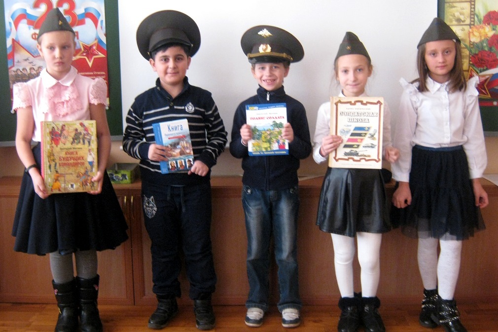 20 февраля библиотекой №15 в рамках программы «Я – патриот» был проведен час истории «Есть такая профессия – Родину защищать!» Участие в беседе приняли юные патриоты из 2 «А» класса школы №54. Познакомившись с историей праздника и его героями, ребята рассказали о своих папах, дедушках, старших братьях и об их смелых поступках не только в армии, но и в повседневной жизни. В конце мероприятия ребят познакомили с детской литературой об армейской службе, отваге и мужестве. Мальчишкам понравилась «Книга будущих командиров» Анатолия Митяева.
