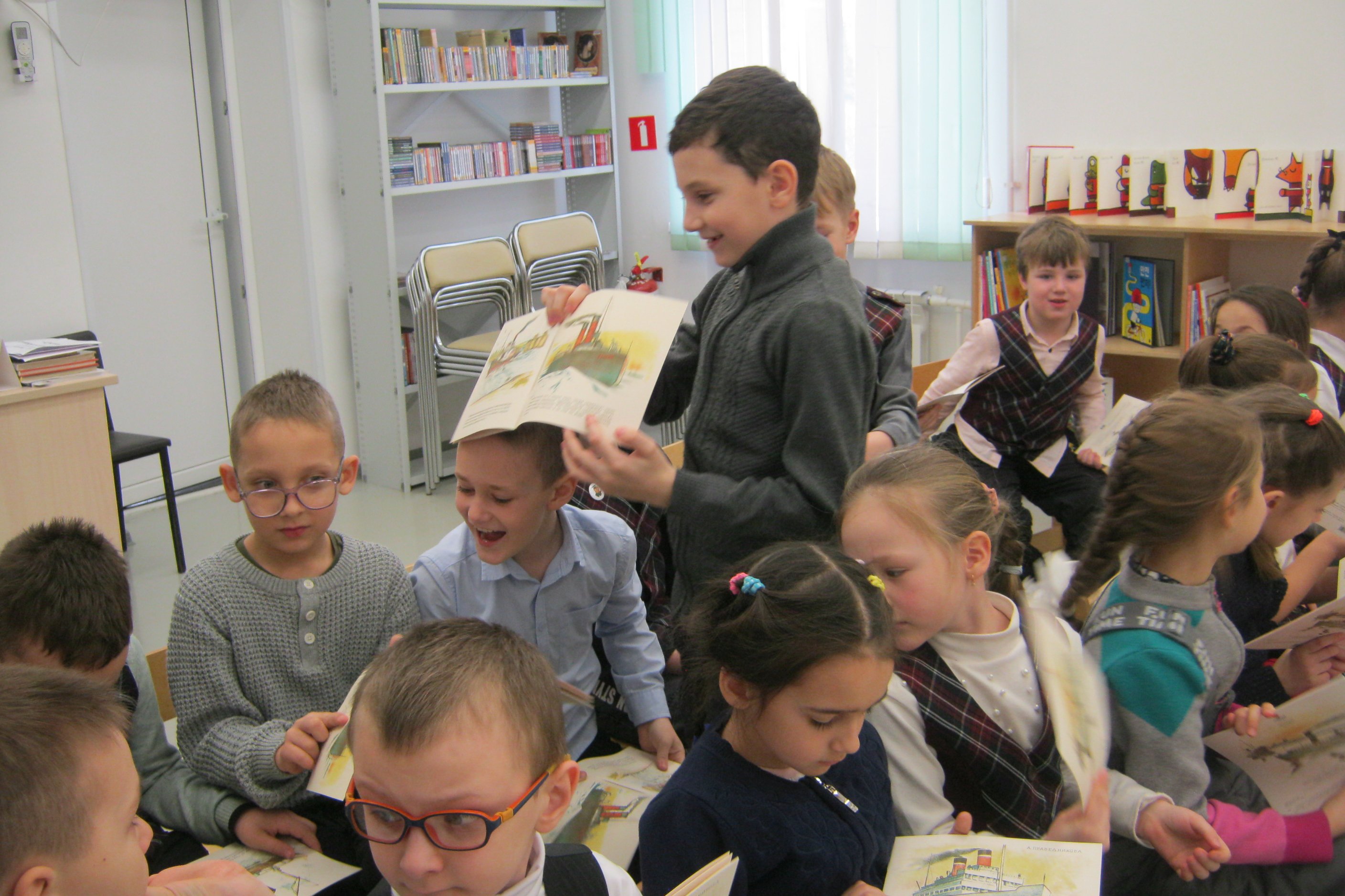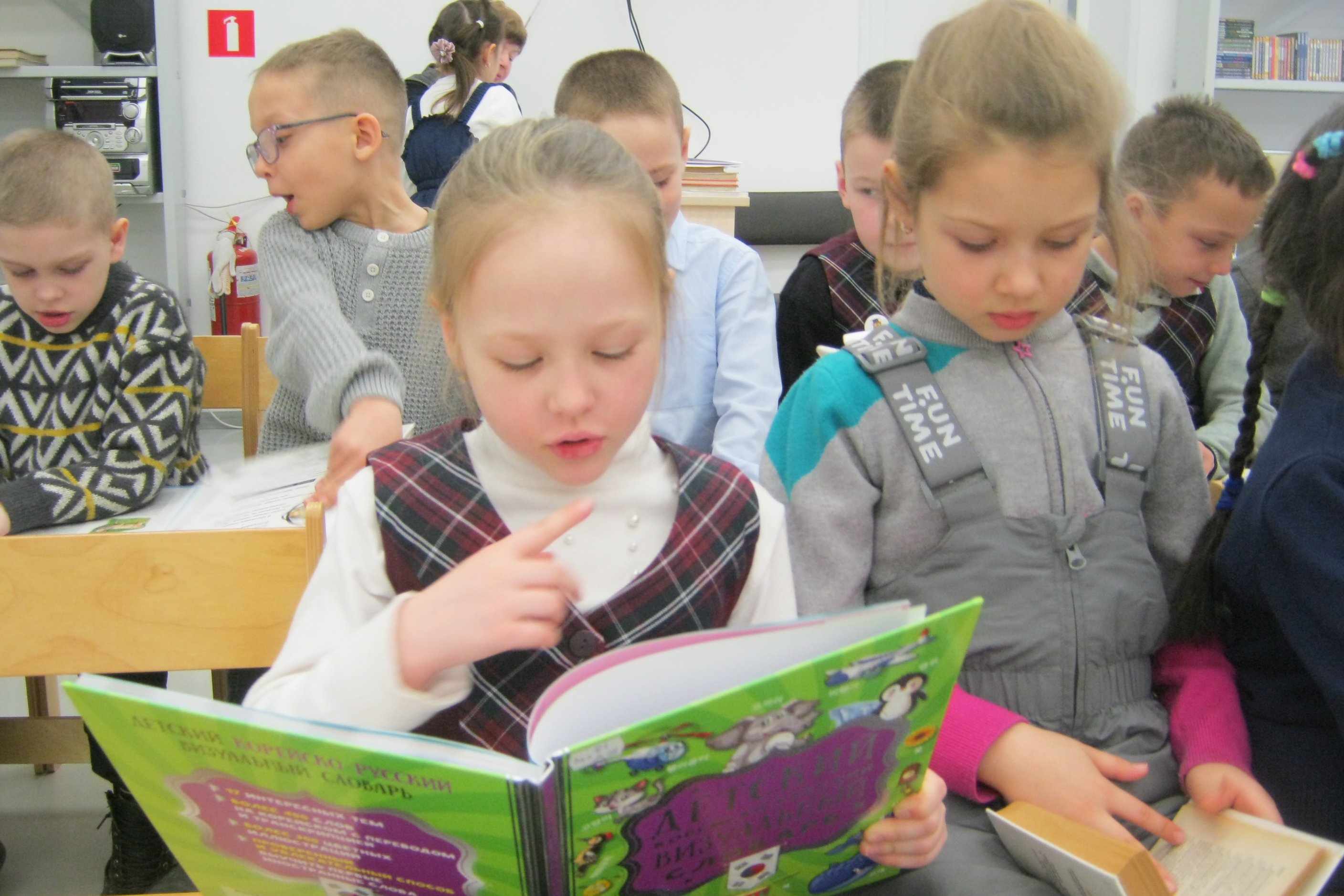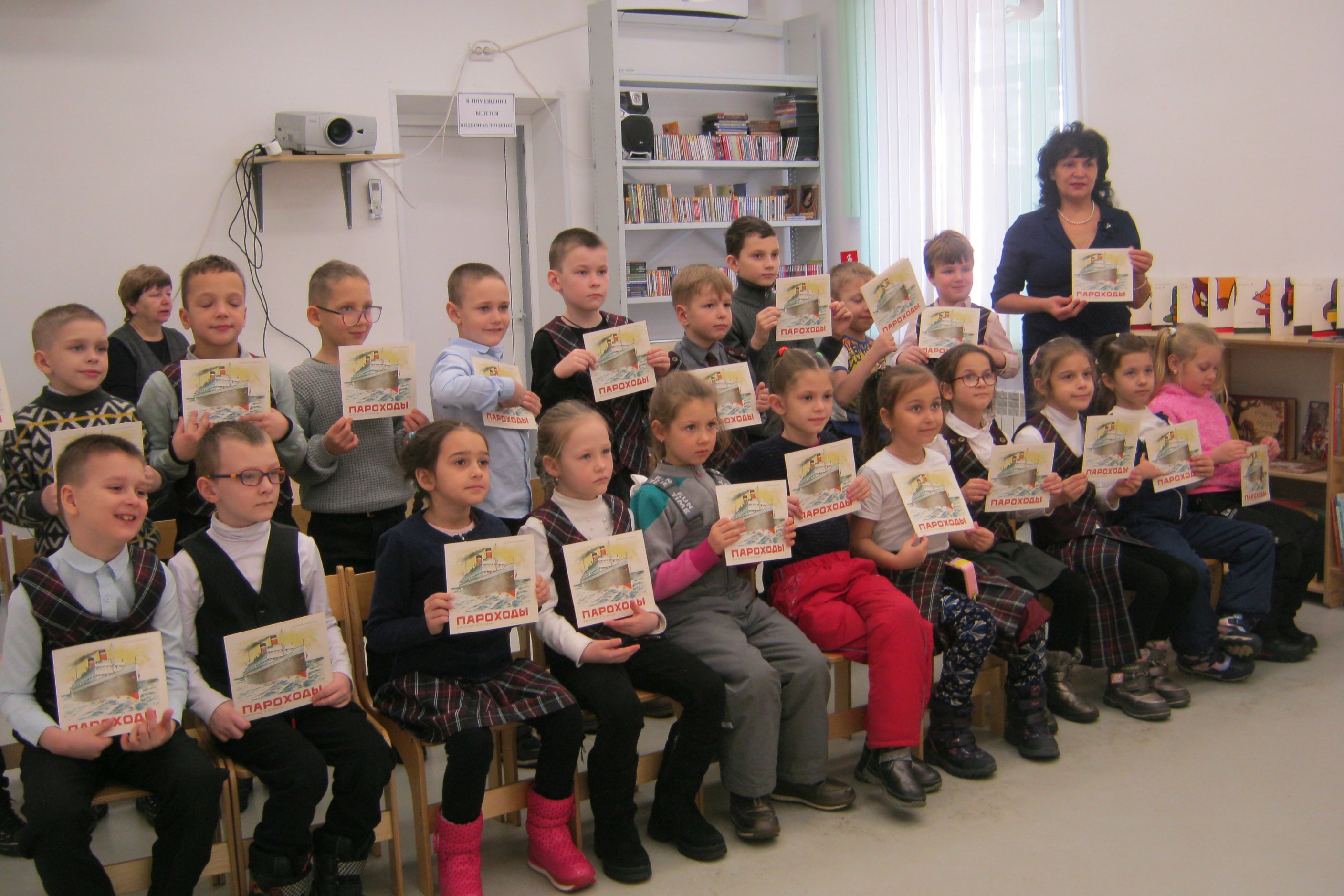 В преддверии Дня родного языка библиотека №8 провела занятие для учеников 2-го «В» класса школы №35. Школьники познакомились с содержимым полок стеллажа, на которых стоят словари: орфоэпический, словарь синонимов, словарь антонимов, словарь ударений, четыре тома толкового словаря В. Даля и другие. Второклассники убедились, что можно открыть словарь и зависнуть так же как с телефоном, там тоже есть картинки, только что видео в словаре нет. А стеллажи с энциклопедиями – это вообще порталы в бесконечные миры. Старшее поколение может подтвердить, как интересно было в доинтернетном детстве листать энциклопедии, где все удивительно: и модель ДНК, и Великий Аттрактор, и кварки, и то, что слово «шумовка» пришло к нам из немецкого языка. Есть в библиотеке и книги для тех, кто особенно ощущает себя жителем портового города и увлекается флотом, парусниками, кораблями, пароходами. В основном такие книги найдешь в зале с литературой для юношества или со взрослой литературой. Но теперь и на детском абонементе можно будет взять книгу «Пароходы» А. Праведниковой – это переиздание истории судоходства для детей. «Для чтения взрослыми детям», — если уж совсем быть точными, потому что именно так написано на книге, которую вместе с книгой «О кораблях» М. Луганского, выпустили в рамках программы «FESCO –детям», направленной на поддержку детства и юношества. Каждый ученик 2-го «В» теперь стал обладателем если не фабрик заводов, то точно «Пароходов» Александры Праведниковой.