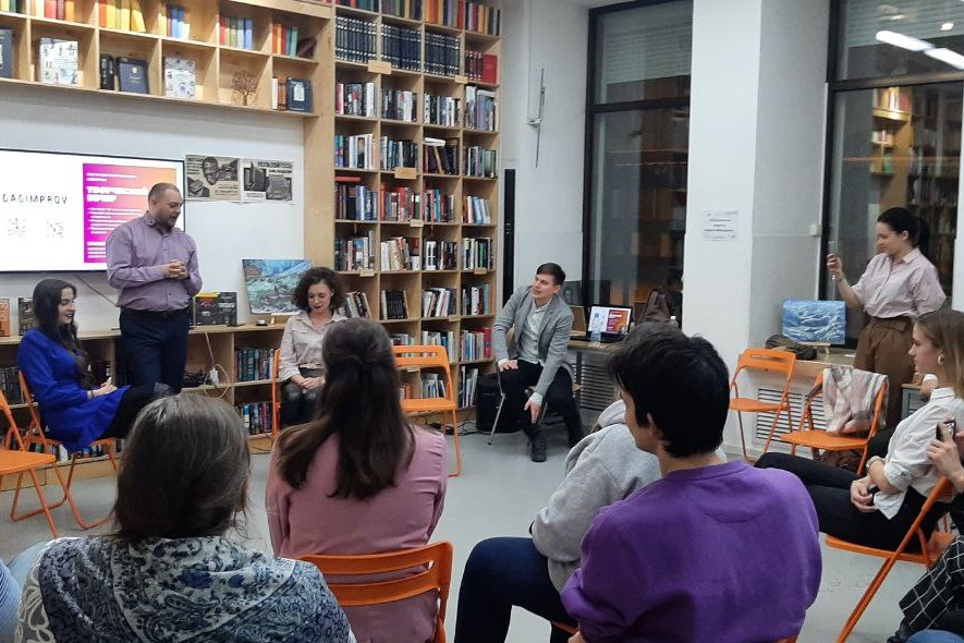 10 февраля в рамках программы «Вечерняя библиотека» в библиотеке БУК состоялся творческий вечер мастерской импровизации GAGIMPROV.