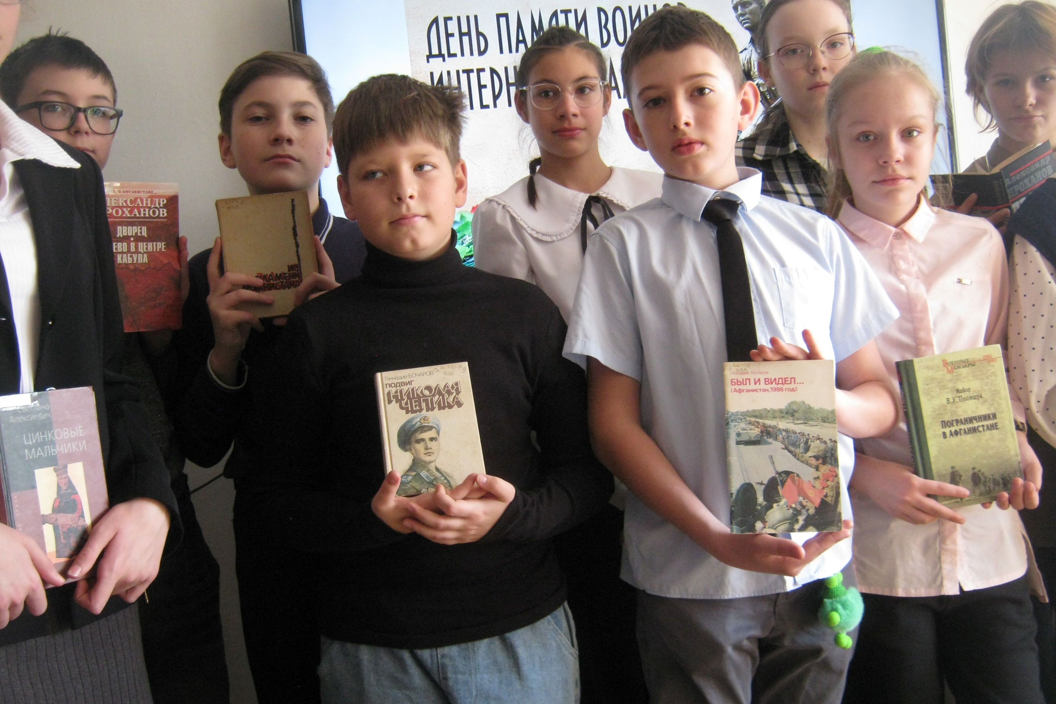 В библиотеке № 15 на прошлой неделе проведен час патриотизма «Из пламени Афганистана». Участниками мероприятия были патриотично настроенные школьники 6-х классов и читатели библиотеки.