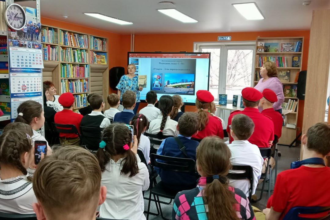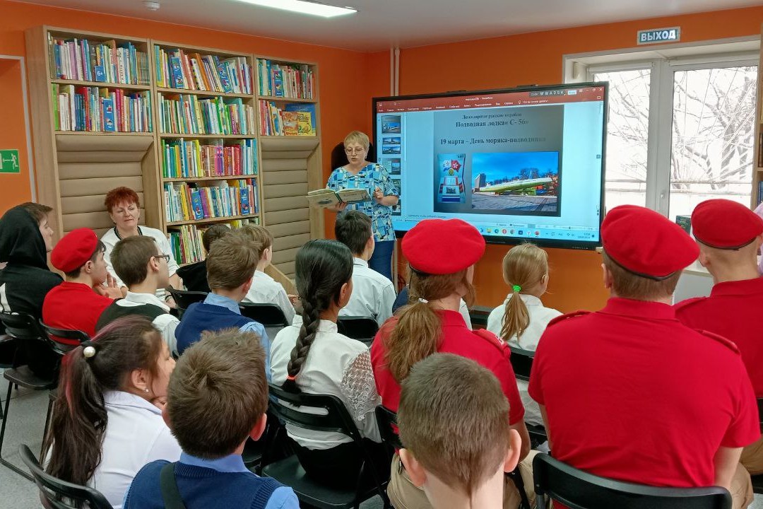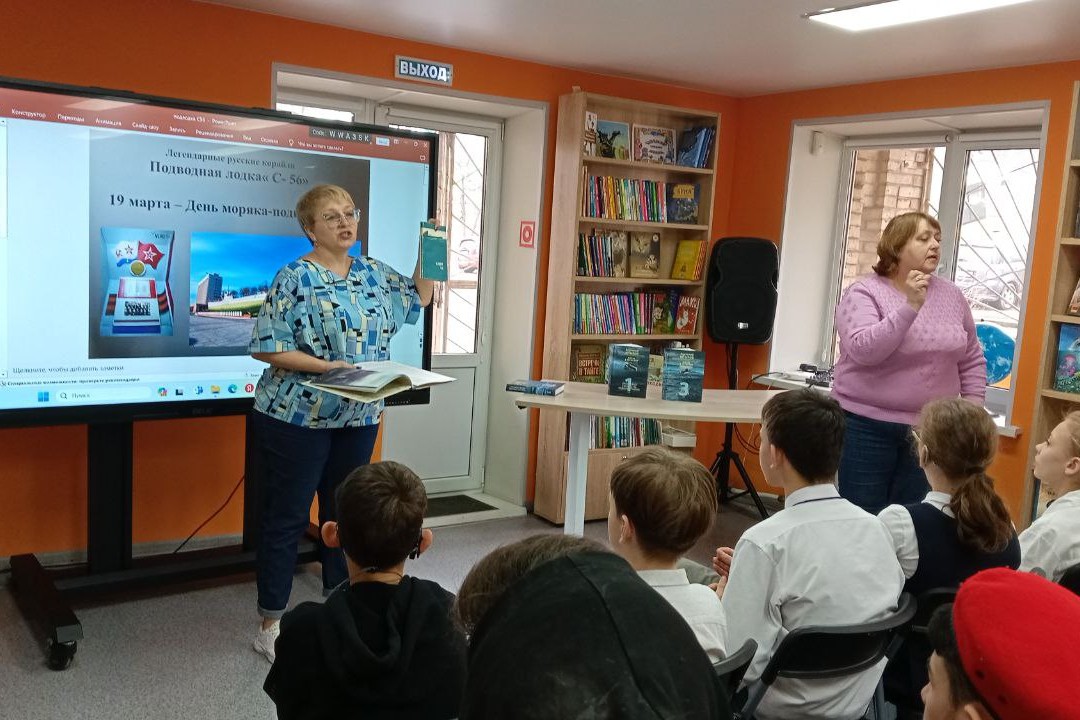 Елена Янсон, заведующий библиотекой, рассказала подросткам и молодежи о том, что 19 марта в нашей стране отмечается День моряка – подводника и к этой дате были подготовлены презентация с видео-экскурсией на лодку-музей «Легендарная подлодка», а также обзор книг «На борту С-56» Героя Советского Союза Григория Щедрина, командовавшего подводной лодкой С — 56 в годы Великой Отечественной войны, трехтомника Анатолия Штырова «Жизнь в перископ», а также новой книги «Легендарные русские корабли» Елены Середа.