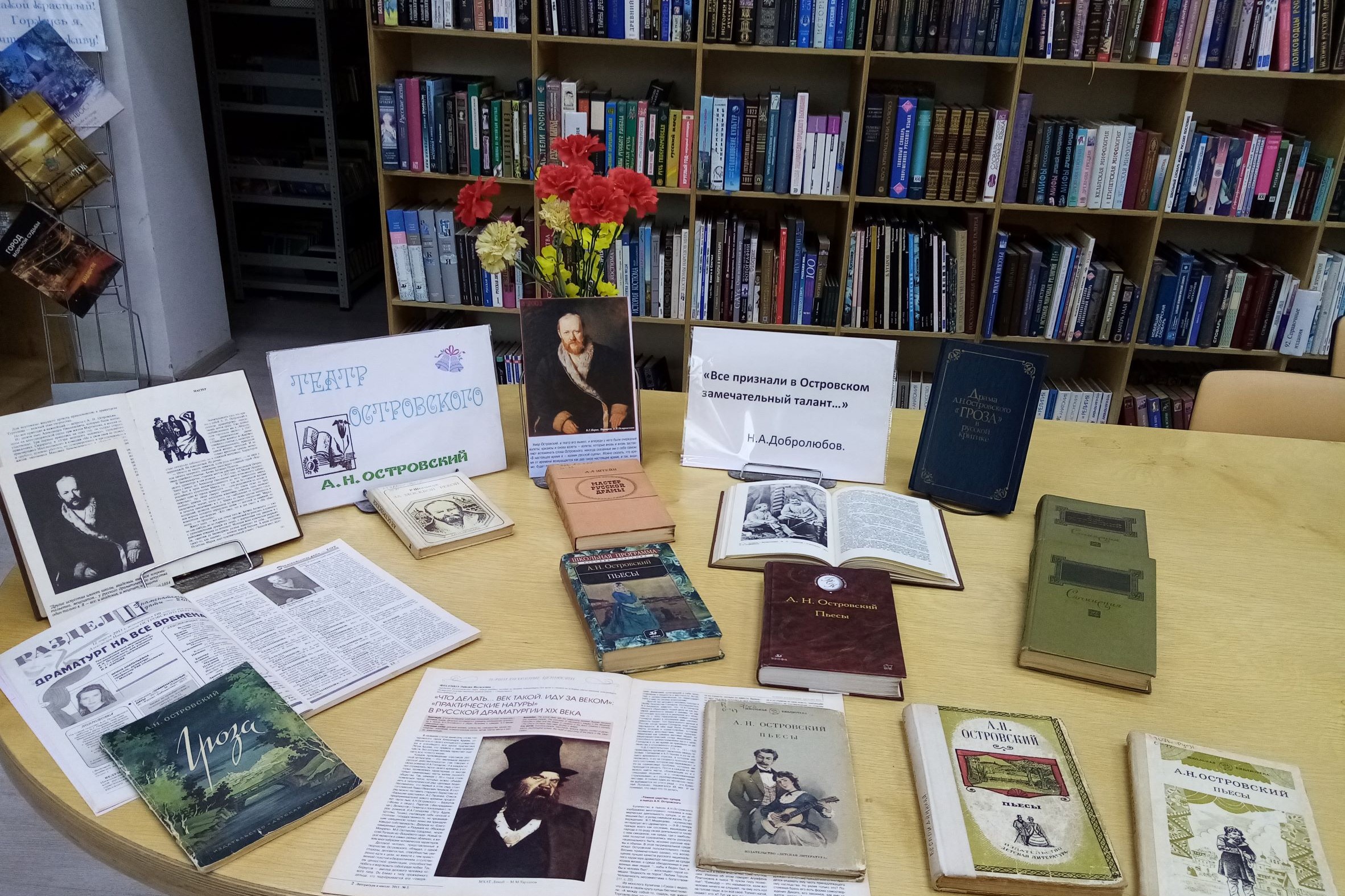 Библиотека № 12 организовала для читателей книжную выставку «Театр А.Н. Островского». На выставке читатели знакомились с разножанровыми произведениями автора — комедии, драматические пьесы, сказки и проза. В них вместилась вся жизнь России 19 века, ее нравы, ее история.
