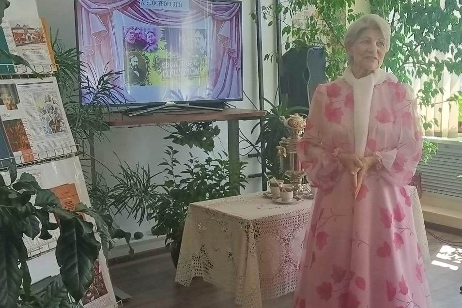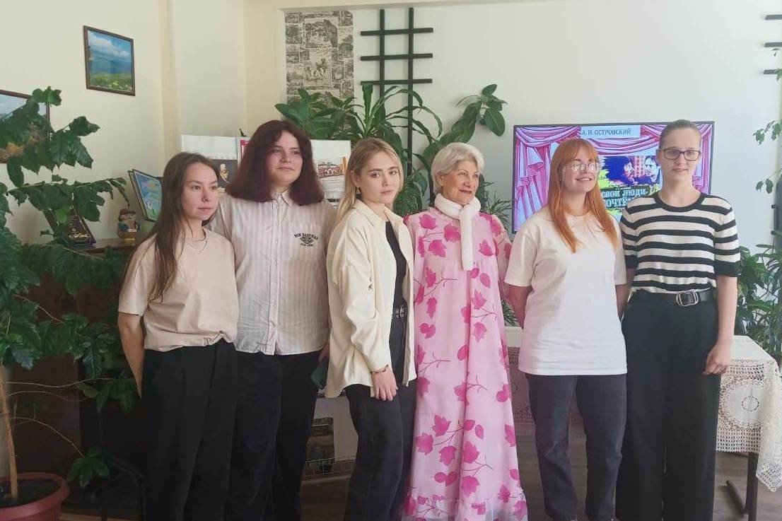 В библиотеке им. И. У. Басаргина 14 апреля в рамках проекта «Учебный день в библиотеке» по программе литературной гостиной «Вектор чтения» прошла дискуссионная площадка с учащимися 10 «А» класса МБОУ «СОШ № 57». 200 лет назад родился замечательный драматург и писатель, который привёл на подмостки русского театра новых героев: купцов, банкиров, актёров, членов их семей. Колоритные внешние образы, характеры, разнообразие костюмов были запечатлены в то время в картинах передвижников. Ребятам предлагается сопоставить образы этих героев с героями пьес Островского. С большим воодушевлением учащиеся восприняли фрагмент из пьесы «Свои люди – сочтёмся», где Липочка и её мать Аграфена Кондратьевна шумно выясняют, какая польза может быть от умения танцевать. Книжная выставка была представлена произведениями А.Н. Островского и портретами знаменитых актёров, исполнявших роли известных героев в разные годы. Выбранная форма проведения занятия («дискуссионная площадка») способствовала тому, что каждый смог высказать свои мнения по поводу пьес А.Н. Островского и их героев.