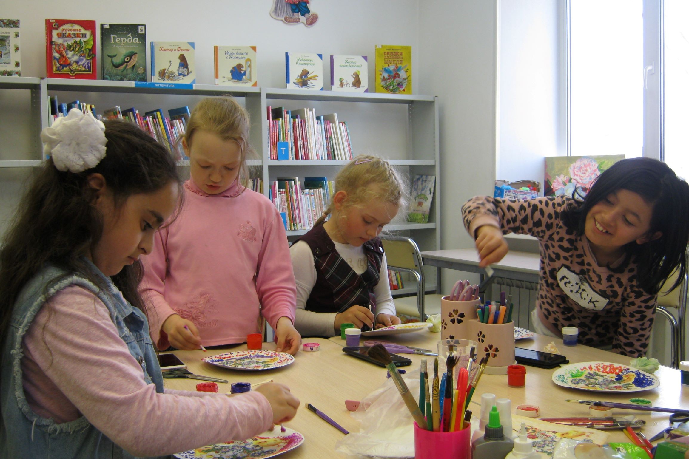Так, например, в апреле традиционно на занятие в библиотеку пришла «Лестница», группа общеразвивающего направления для детей с ОВЗ. Вместе с родителями, детвора сделала несложную, но привлекательную поделку — медведя с великолепными зубами в пене от зубной пасты. Конечно, поделку предварила беседа о важном значении гигиены и внимательного отношения к своему здоровью. Родители всегда готовы сделать с детьми фигурку из бумаги, помочь раскрасить ее, но в этот раз мама Феди и папа Сони улыбались чаще, чем обычно, медведь с голливудской улыбкой рассмешил их. А на предпасхальной творческой мастерской тоже была забавная ситуация: декупаж на бумажной тарелочке пришли делать Хушнуда, Рузибой, Алекс, Диана, короче говоря, только дети из армянских и таджикских семей. Маленькие таджики и армяне щедро украшали каемку своих бумажных тарелок точечным орнаментом и попутно рассказывали, что в их семьях тоже принято красить яйца на Пасху.