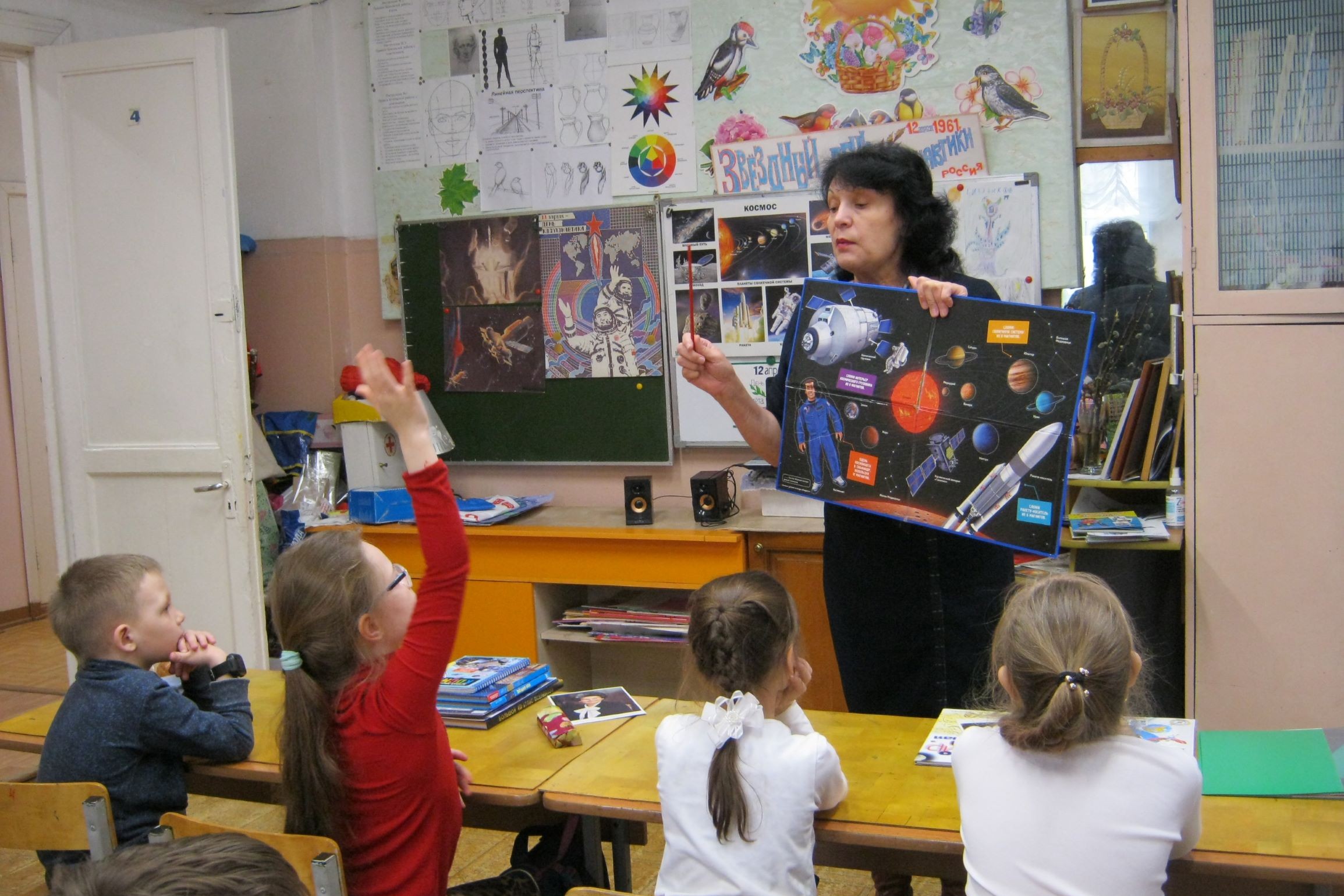 13 апреля библиотека № 8 посетила занятие в центре развития творчества детства и юношества. Детвора узнала о том, что первому полету человека в космос предшествовало много запусков собак в летательных аппаратах в стратосферу и треть этих полетов закончилась трагически. Конечно, эту печальную страницу в освоении космоса дети слушали молча, зато часто поднимали руку, когда разговор пошел о том, кто после Юрия Гагарина побывал в космосе, и кто первым вышел в открытый космос и зачем в открытом космосе нужно быть прикрепленным тросом. Невесомость, вакуум, безвоздушное пространство, орбитальная станция – не только мальчишкам, но и девчонкам хотелось показать свои знания, беседуя об удивительном космосе. А еще ребята, посещающие вокальный кружок при ЦРТДиЮ, подготовили сюрприз к занятию, приуроченному ко Дню освоения космоса, спели песню «Полет на Луну».