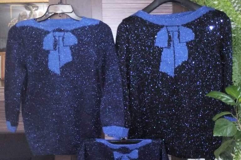 А с книгой «Коко Шанель» Анри Гиделя у меня своя «рукодельная история». Когда я читала эту книгу, то обратила внимание на эпизод, где Коко приходит в ресторан на встречу с дизайнером Эльзой Скиапарелли. На Эльзе был вязаный свитер с белым бантом на груди. Я загорелась этой идеей и нашла эту модель изделия в интернете. Свитер я связала и не один, а целых 4: себе, дочке, внучке и невестке. Получился модный family look. И таких парных работ у меня много.