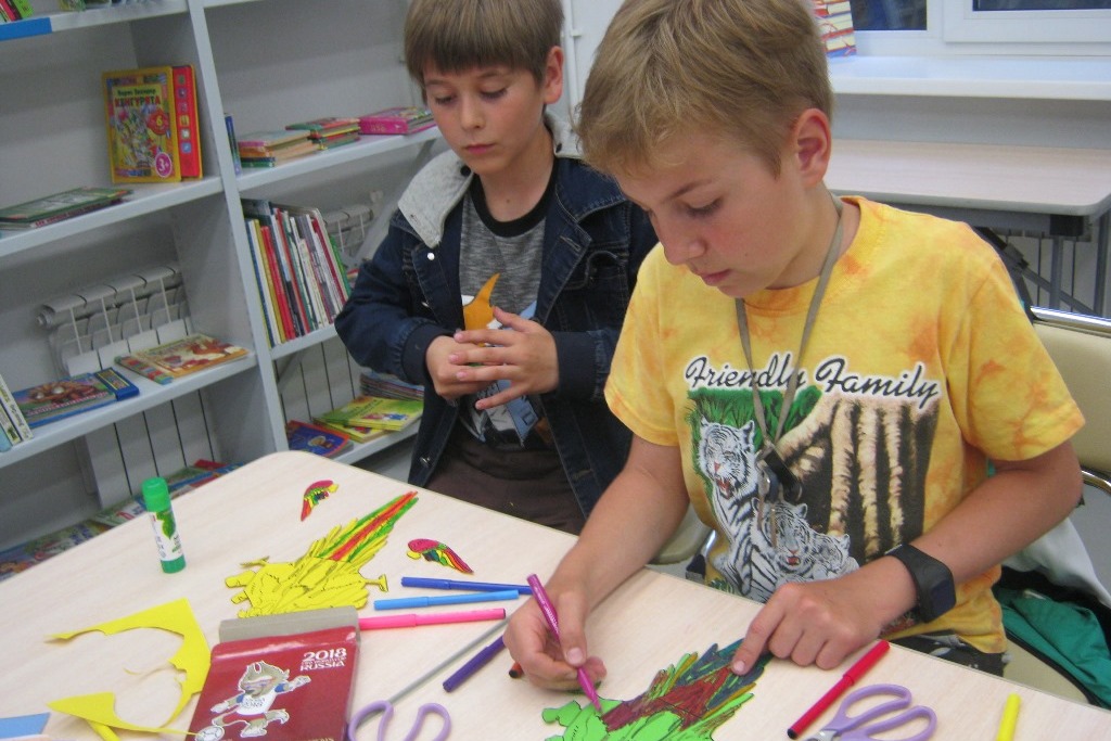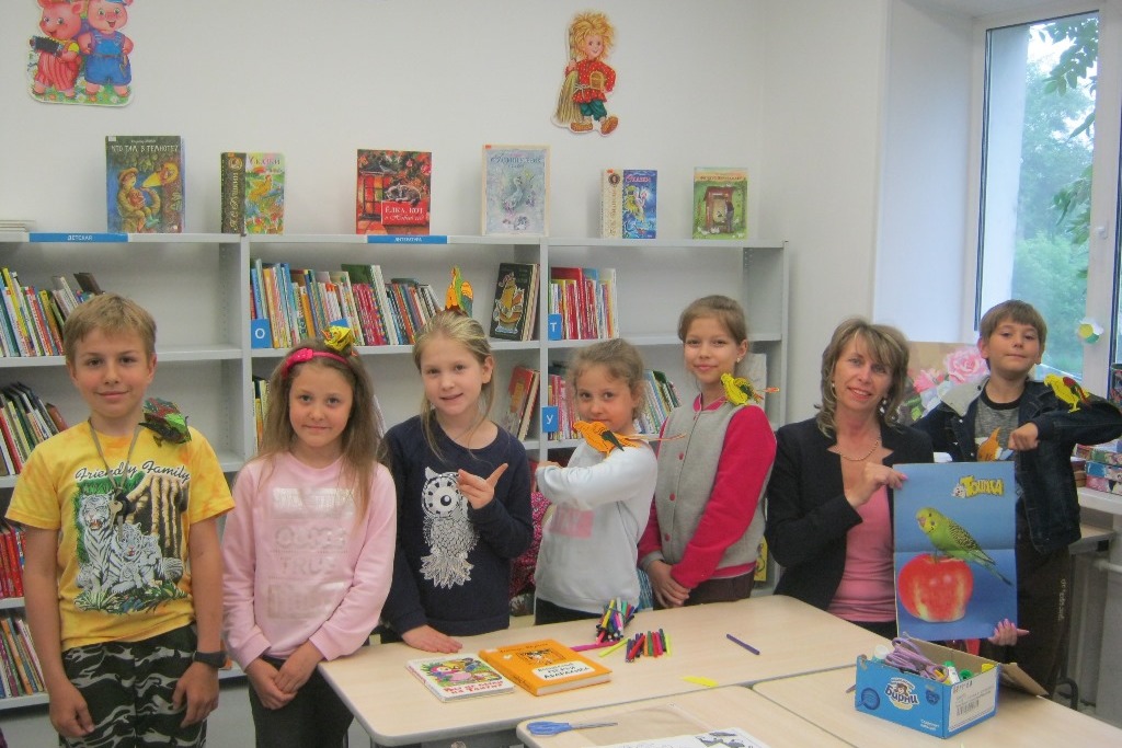 Поделка на творческой мастерской 18 июня тоже стала поводом для детей полистать книги и журналы о птицах. А именно – о попугаях. Дело в том, что завести крупного попугая дома – это значит не только слушать его птичьи таланты, но и убирать за ним. Не каждый родитель на это согласится. А вот сделать попугая из яркой цветной бумаги в библиотеке – такую радость детворе никто не запретит!