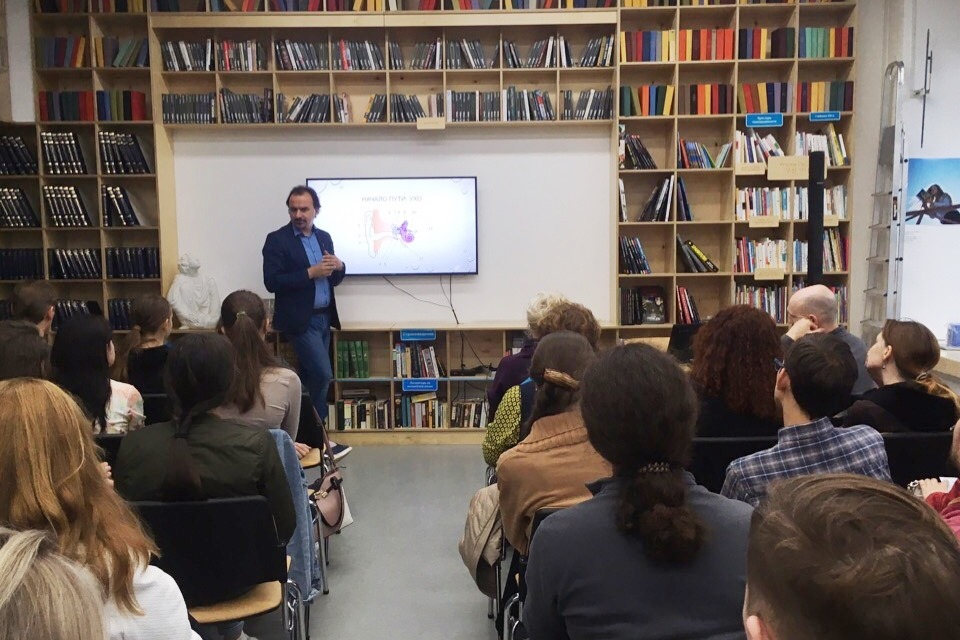 Вторая лекция «Музыка и мозг» была о том, как мы слышим музыку, начиная от того, как звук попадает в ухо, заканчивая тем, почему люди меняют музыкальные вкусы.
