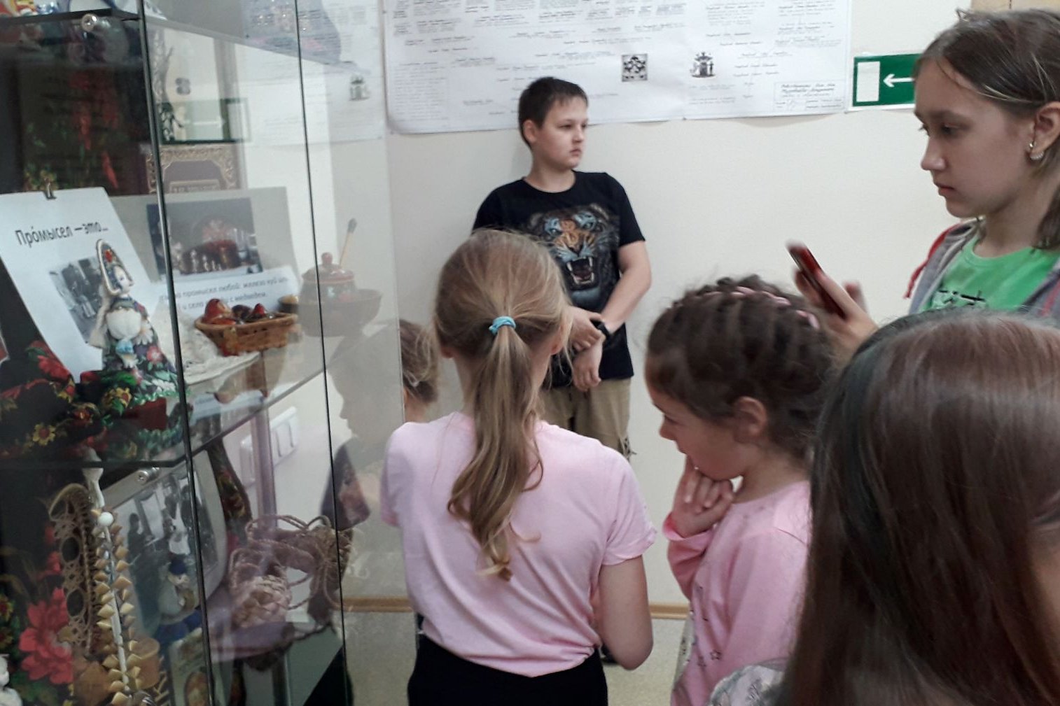Фольклорные часы для школьников из оздоровительного лагеря школы № 62 и воспитанников детского сада № 121 состоялись в библиотеке им. Н.Н. Муравьева-Амурского. Школьники стали участниками мероприятия на тему «Народные промыслы России» – актуальной в текущем году, объявленном Годом культурного наследия народов России. В ходе знакомства с электронной презентацией «Народное творчество» выяснилось, что участники мероприятия имеют представление лишь о некоторых, самых основных промыслах. Даже жостовские подносы и павловопосадские шали стали для детей младшего и среднего школьного возраста открытием. Закреплению полученных знаний послужила превосходно оформленная экспозиция, открытая в читальном зале библиотеки в самом начале июня. Использованная в ходе встречи литература стала дополнением к многочисленным иллюстрациям и послужит основой для развития в дальнейшем данной темы, тесно связанной с воспитанием патриотизма.