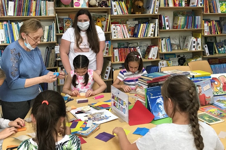 В летние каникулы каждый четверг мальчишки и девчонки с большим желанием приходят в детскую библиотеку №7, чтобы помастерить, поиграть и почитать. Им было очень интересно почитать вслух рассказы Анатолия Онегова «На лугу». Вместе с автором мальчишки совершили прогулку в поле, на озеро, вдохнули душистый аромат трав и цветов на лугу. Потом увлеченно делали веночки из живых цветов – клевера и одуванчиков, радовались, что хорошо получается. Они собирались подарить венки своим мамам. Детям нравится делать поделки оригами, хотя это очень кропотливая работа и не всегда получается то, что задумано. В этом им помогают библиотечные книги по оригами.