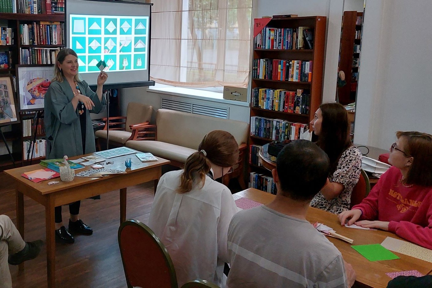 Директор школы японского языка «Хикари» Инесса Иноуэ провела для всех собравшихся лекцию и мастер-класс по древнему японскому искусству оригами. Из листков специальной бумаги для оригами участники мастер-класса сложили Тоторо, персонажа знаменитого на весь мир японского мультфильма «Мой сосед Тоторо».