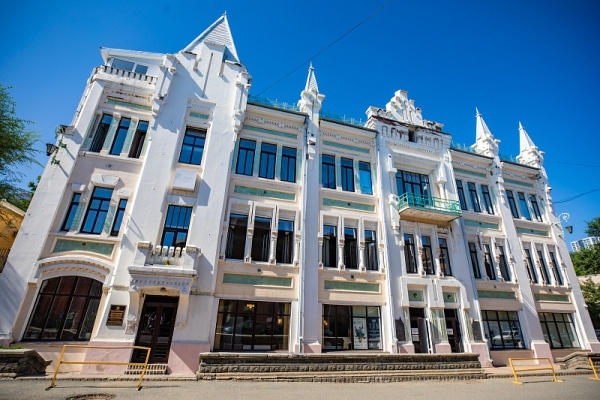 Завершилась прогулка на Пушкинской, 27, в здании Собрание приказчиков (Пушкинский театр). Общественное здание, известное до революции как Собрание приказчиков или Пушкинский театр, было построено в 1907—1908 годах по проекту архитектора Павла Вагнера. В здании располагалась библиотека в десять тысяч томов, бильярдная, устраивались культурные вечера, были открыты клубы по интересам и театральный зал с подсобными помещениями, ряд гостиных. На сцене театра ставились любительские спектакли. В Собрании проводились благотворительные концерты. Нередко на сцене выступали актёры, певцы и целые коллективы.