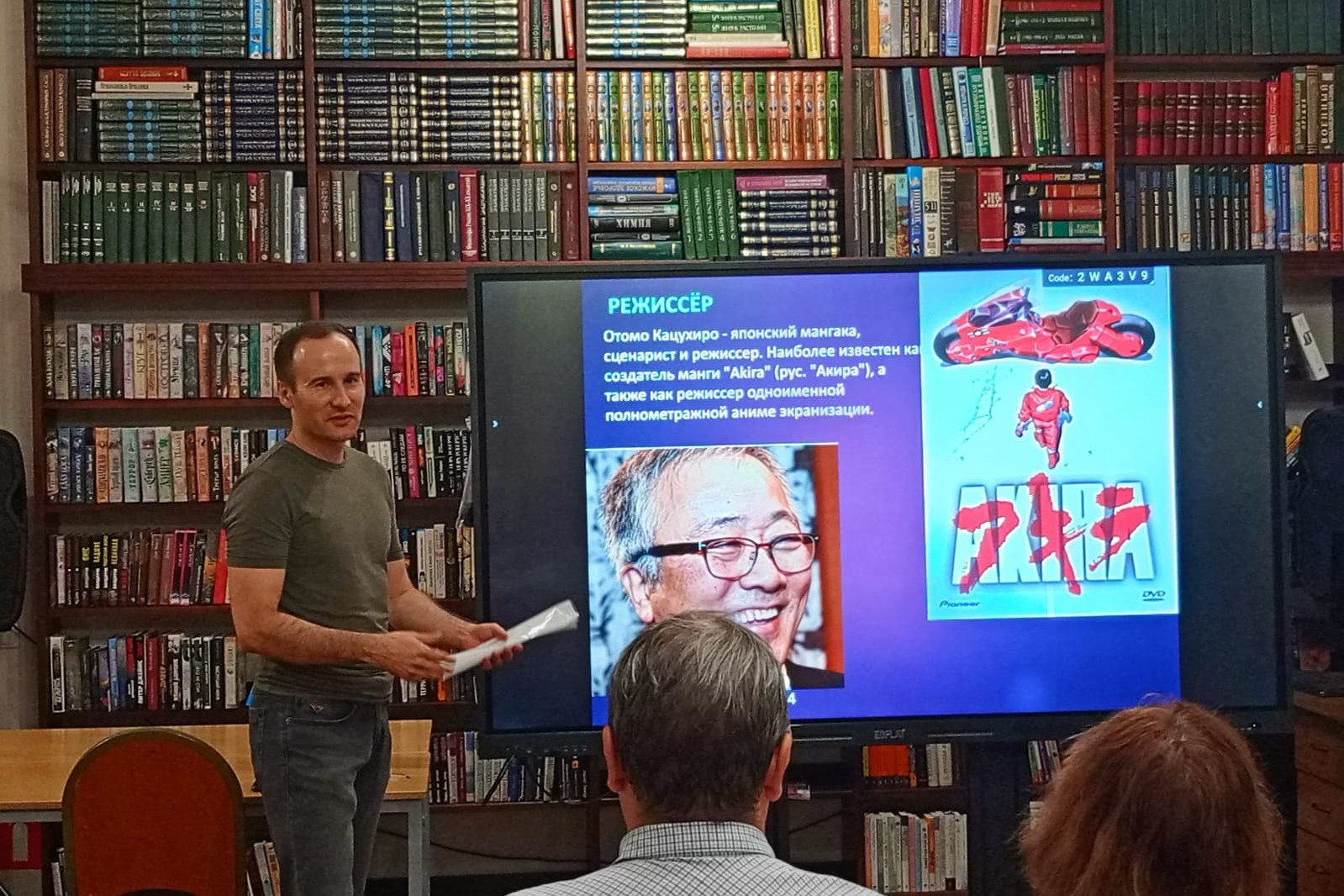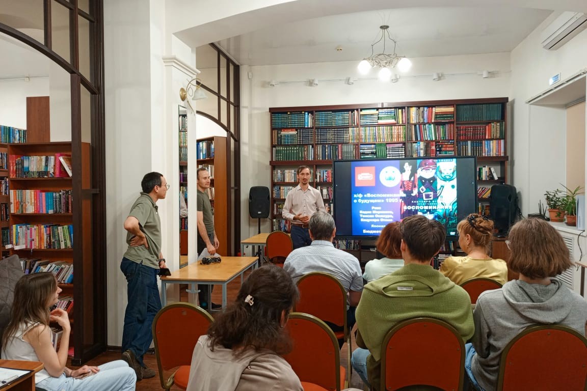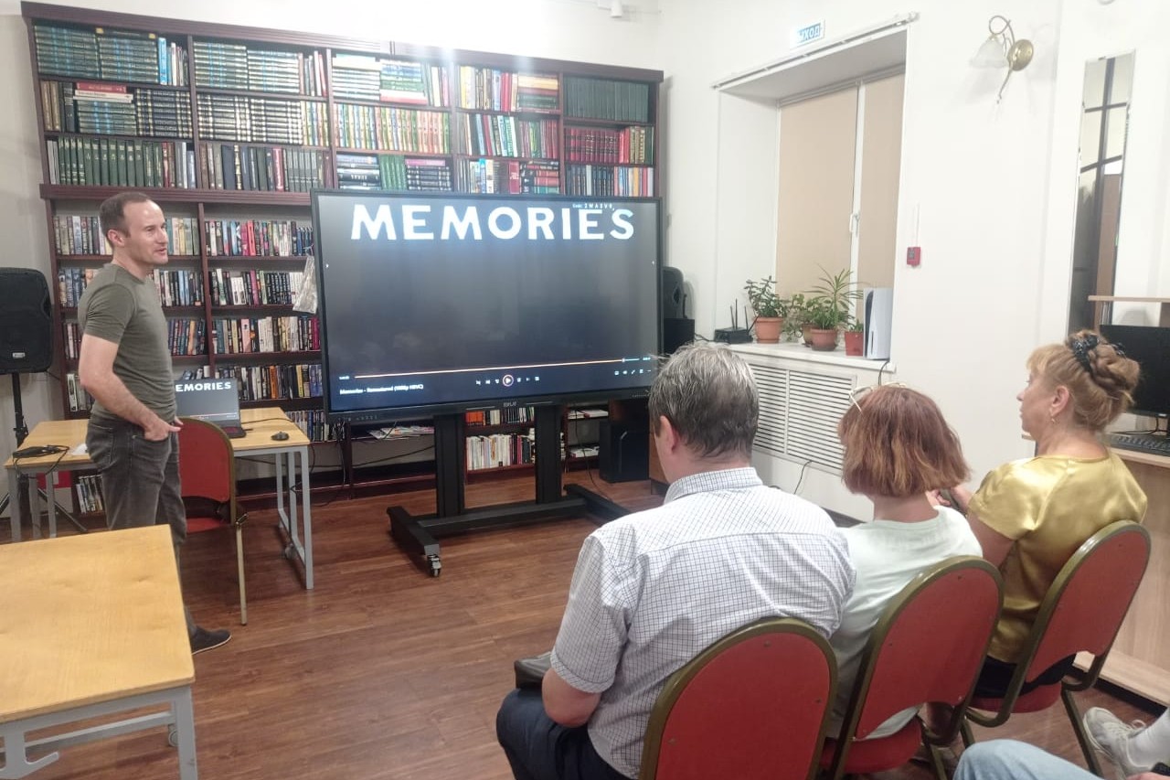 В день первого просмотра на площадке библиотеки смотрели анимационный фильм «Воспоминания о будущем» (1995). Япония; реж. Кодзи Моримото, Тэнсаи Окамура, Кацухиро Отомо. Авторская аниме-антология от культового режиссёра «Акиры», Кацухиро Отомо, три новеллы, основанные на трёх его ранних рассказах.