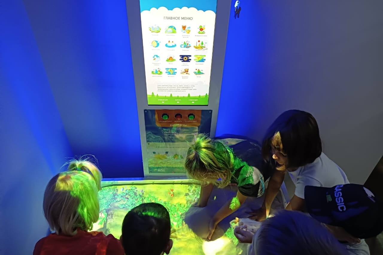В продолжении темы юные читатели отправились в пустыню и в долину вулканов. Интерактивная песочница с ярким звуковым и световым оформлением придала колорит этому увлекательному путешествию. Всё увиденное можно было реализовать в красках, изобразив рисунки на интерактивном (сенсорном) столе.