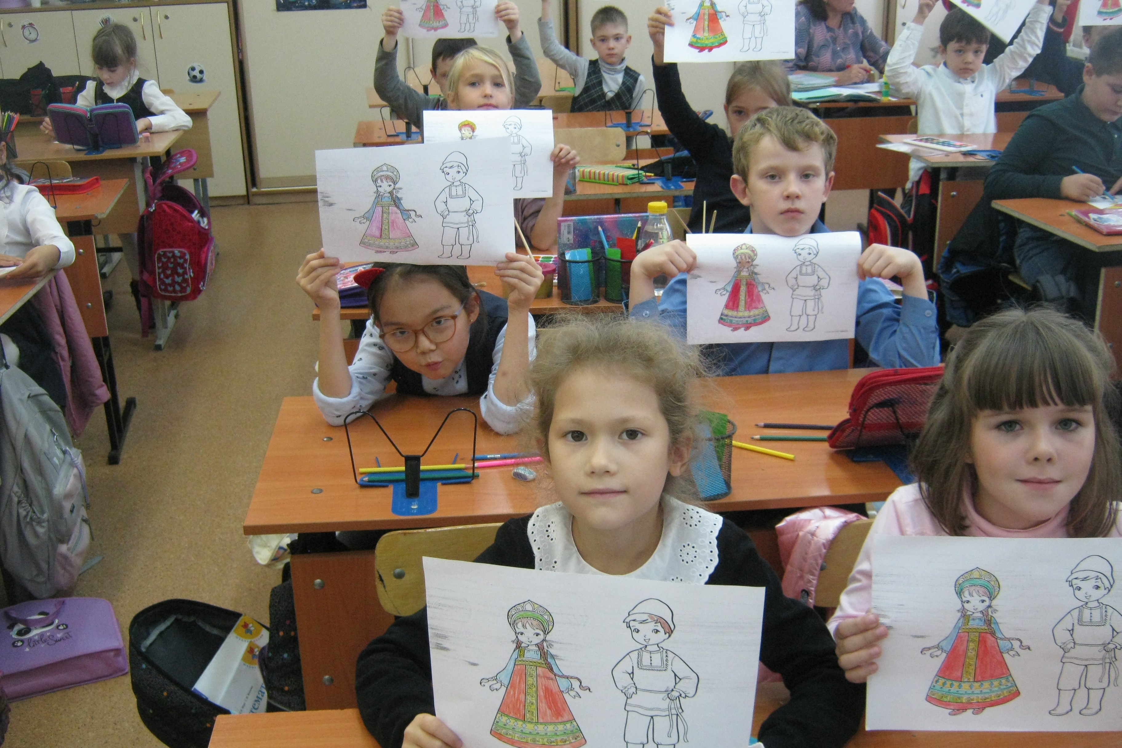 Второклассники с любопытством и прослушали, и просмотрели историю русского костюма в книгах, а также на кукольных манекенах и сами приступили к творчеству создания женского образа далеких времен. Очень старались, чтобы костюм соответствовал эпохи двести летней давности. Получилось красиво и нарядно, и ярко, и даже поэтично, потому что русский костюм — это тоже поэзия. Поэзия цвета, узора, кружев. Дети просто радовались. Одежда имеет значение.