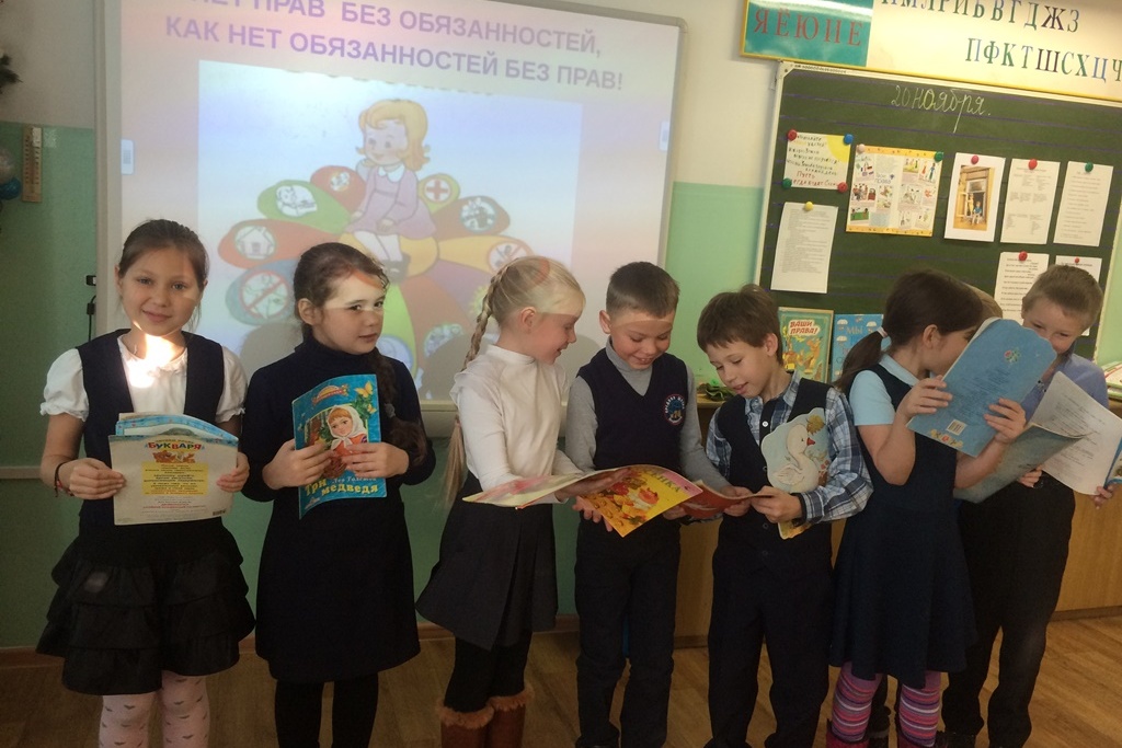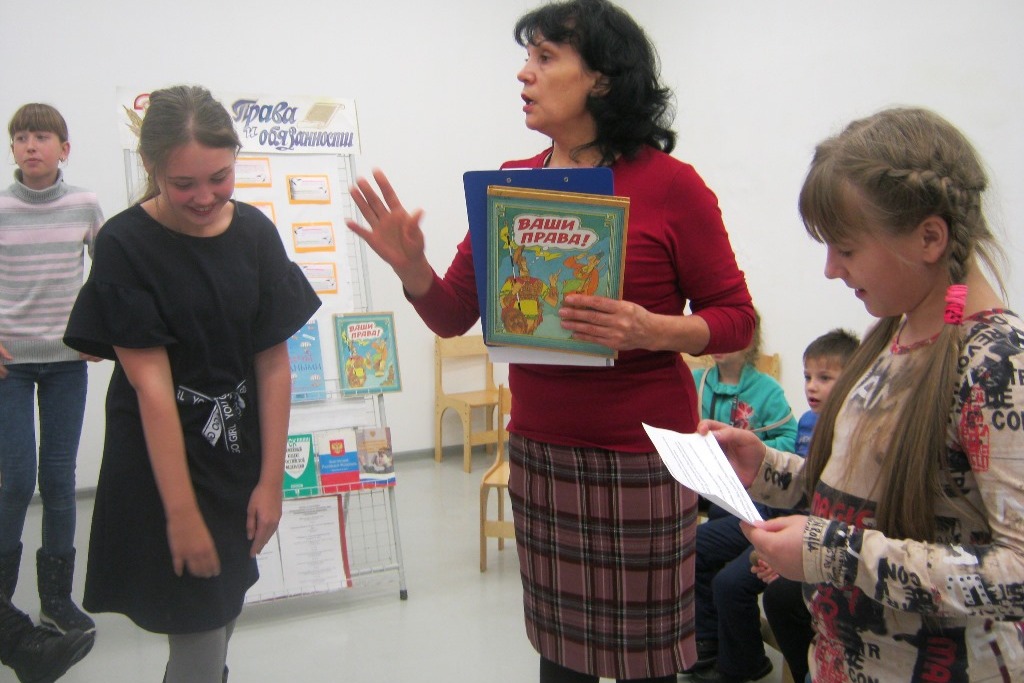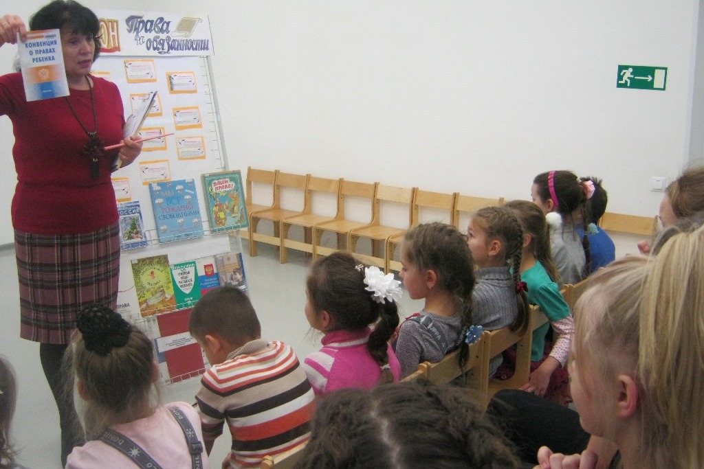 Особо рассуждали о Праве на имя и поиграли в игру «Имена», прослушав веселое стихотворение Зои Александровой. Говорили о чувстве гражданского долга и ответственности, о праве общения на родном языке, о праве на образование, об обязанностях, разбирали различные ситуации и давали оценку поведению детей, высказывали свое мнение. Ребята приводили множество примеров о праве на охрану здоровья, на отдых, о защите от сексуальной эксплуатации. Напоследок читали по очереди статьи из книги Евгения Шабельника «Ваши права» и обсуждали сказки, где нарушались права литературных героев.