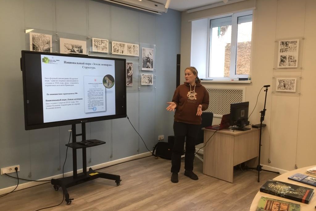 16 ноября в Центральной библиотеке им. А.П. Чехова, созданной в рамках национального проекта «Культура», читатели и гости встретились со старшим научным сотрудником национального парка «Земля леопарда» Блидченко Екатериной Юрьевной.