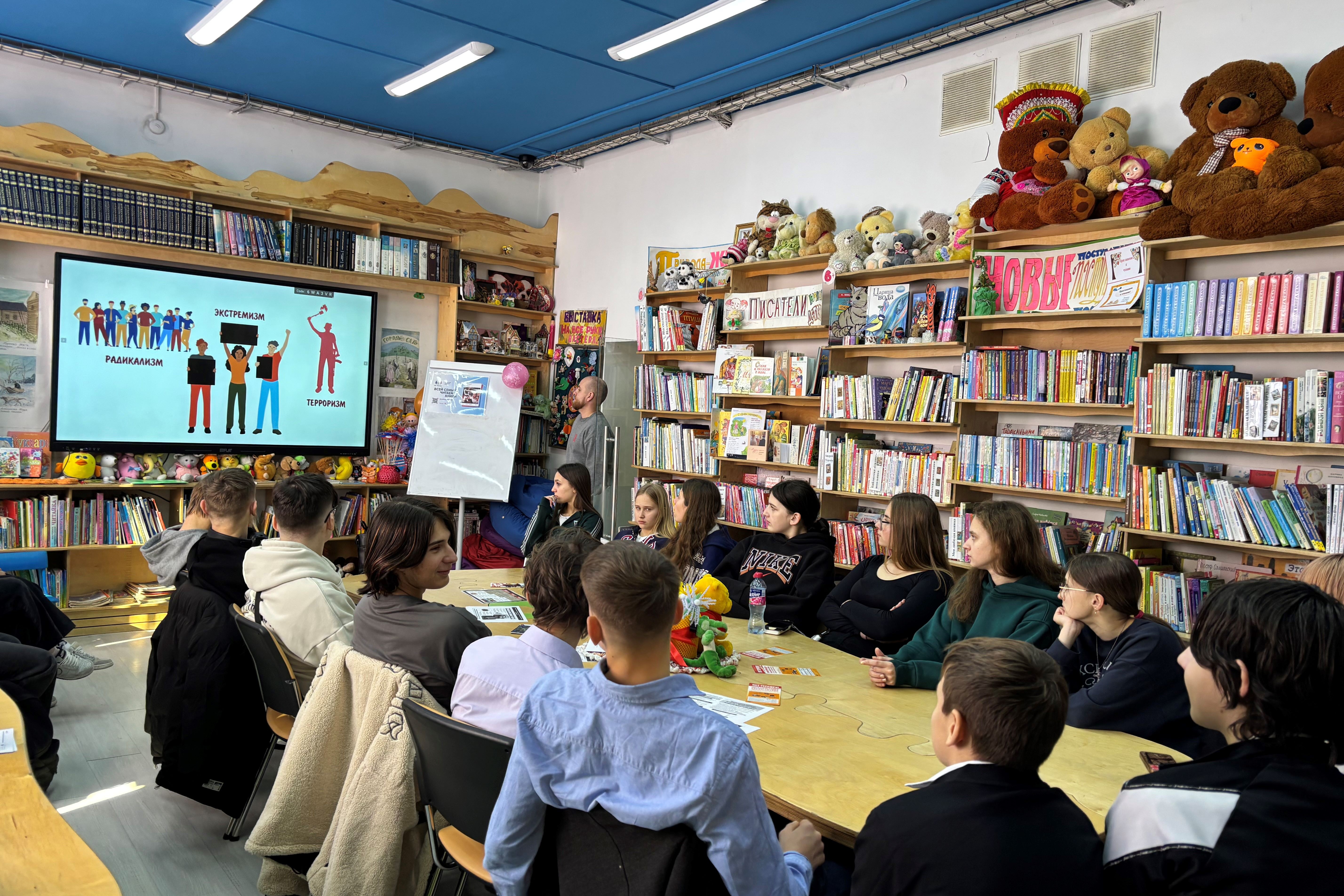 20 ноября в Детской библиотеке № 7 (ул. Калинина, 281) прошел час общения со специалистом Координационного центра ДВФУ Сергеем Кондрашовым по вопросам формирования у молодежи активной гражданской позиции, предупреждения межнациональных и межконфессиональных конфликтов, противодействия идеологии терроризма и профилактики экстремизма.