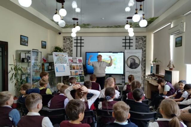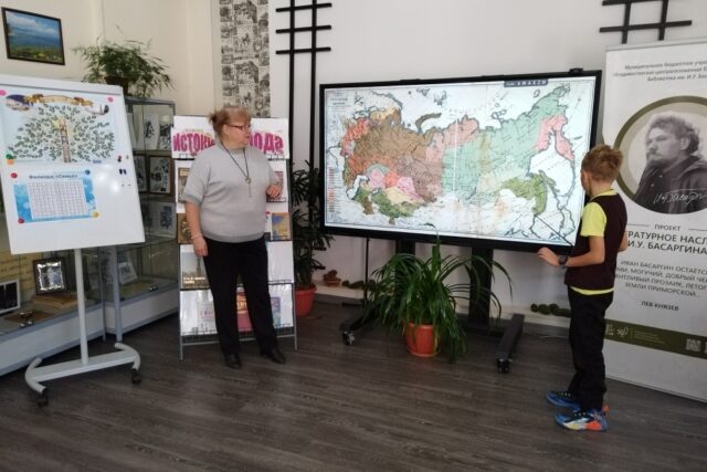 В библиотеке им. И.У. Басаргина учащиеся 3 «Б» класса МБОУ «СОШ № 57» в рамках проекта «Наследие», по программе «Юный родовед», познакомились с новыми разделами наук, с которыми тесно связана генеалогия: антропонимика и топонимика.