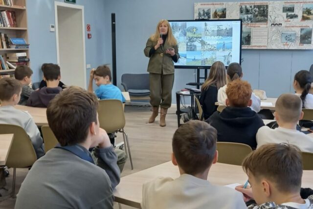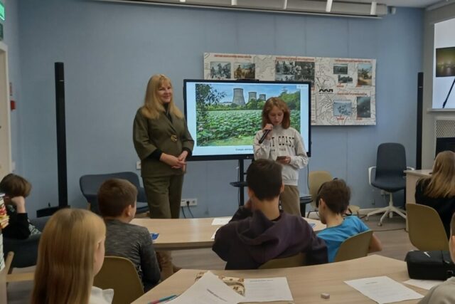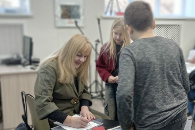 В Центральной библиотеке им. Антона Чехова в рамках проекта «Учебный день в библиотеке» ученики 6 Б класса СОШ №51 встретились 19 ноября с Натальей Фориковой, автором поэтических сборников, журналистом, актрисой, режиссером, педагогом детской студии «Алые паруса».