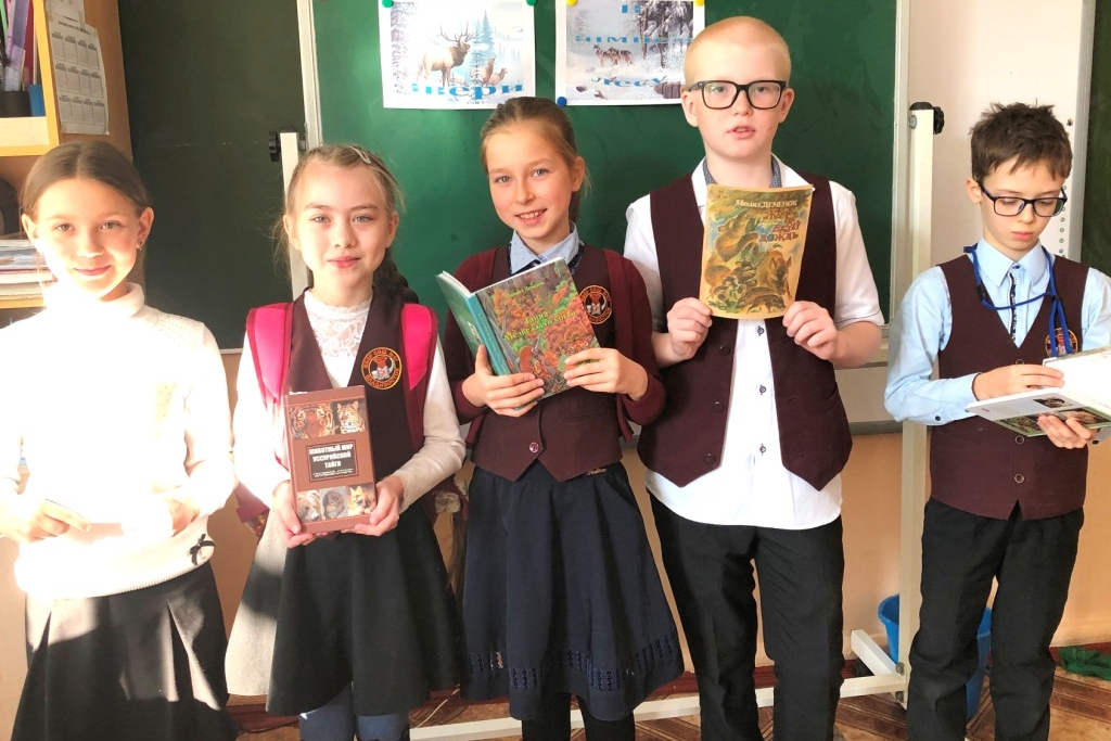 Школьники рассмотрели заячьи, волчьи и лисьи следы, следы колонка, росомахи, медведя, тигра и соболя на белом серебристом снегу, которые были представлены на слайдах презентации, а затем испытали себя в роли следопытов и опознали по предложенным силуэтам следы восьми диких животных приморских лесов. Хотя считается, что юные жители крупных городов едва ли смогут отличить следы, оставленные на снегу тигром, от тех, которые могут оставить медведь или росомаха, школьники справились с заданием успешно.