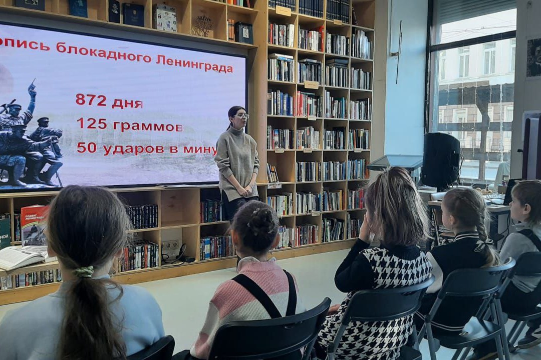 Война и блокада резко изменили Ленинград. Сотни тысяч его жителей оказались в буквальном смысле на грани смерти. Но даже тогда ленинградцы жили, работали, учились и боролись за то, чтобы выстоять вместе со всей страной. О сложившихся условиях жизни горожан, о работе предприятий и силе мужества и воле рассказывали детям сотрудники библиотеки БУК. Ребята внимательно послушали материал о непрекращающейся работе Ленинградского молочного комбината № 1 имени С.М. Кирова, который во время блокады не останавливал работу ни на один день и кормил, как ленинградцев, так и фронт. Узнали как в Лесотехнической академии ученые разработали способ приготовления пищевых концентратов из древесной коры с «грибным вкусом». И отчего в 1942 году в Ленинграде выходили специальные книги о том, как использовать для еды различные растения. С восторгом приняли информацию о героическом прорыве энергетической блокады, а также узнали о судьбе Ленинградского зоосада в годы блокады. Дети с большим интересом посмотрели фотографии военных лет, познакомились в книжной выставкой, посвященной снятию блокады Ленинграда, были очень впечатлены подробностями жизни ленинградцев, их героизмом и силой духа.