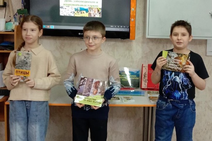 Библиотека № 14 организовала 11 января экологический час для воспитанников ДОУ № 160. В ходе беседы дети узнали о том, для чего создаются заповедники, какие заповедники и национальные парки есть на территории России, узнали об особо охраняемых территориях Приморского края, вспомнили и обсудили правила поведения в природе. Ребята посмотрели презентацию «До чего волнуют душу эти заповедные места».