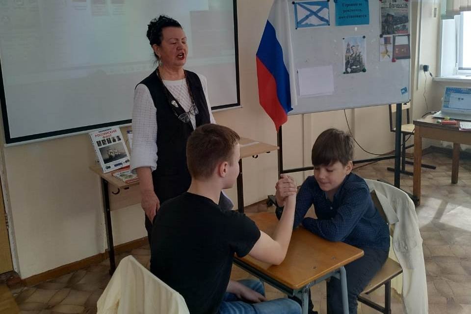 Показать силушку богатырскую – соревнования по армрестлингу, надеть форму и отдать честь, сделать 20 приседаний за 20 секунд, назвать все виды войск, собрать аптечку медицинской сестры, расшифровать шифровку «Тяжело в учении — легко в бою» (знаменитые слова А. Суворова), -всё получилось у наших бедующих защитников родины. Особое внимание обратили на город нашенский, город — порт на берегу Японского моря. Ребята вспомнили, как выглядит Андреевский флаг, его историю и символику. Морская викторина показала блестящие знания ребят в деле морском, ведь не зря мы живём у моря.