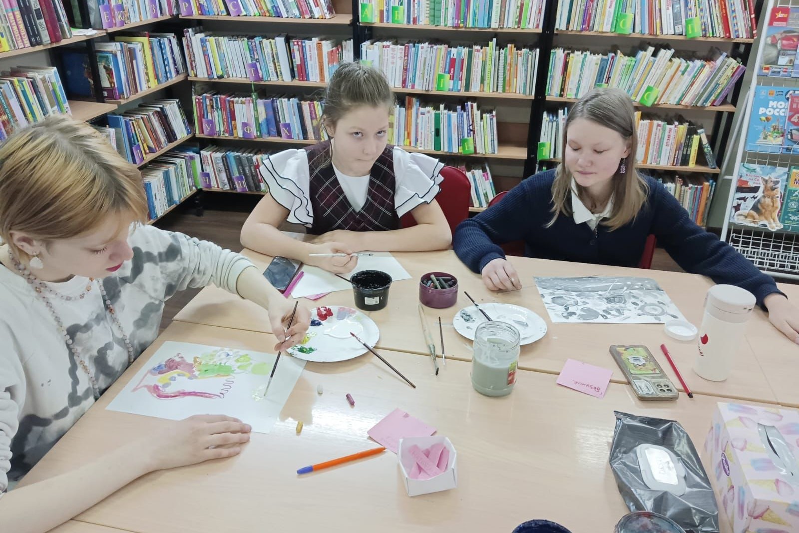 На прошлой неделе в библиотеке № 4 прошла встреча экспериментальной художественной мастерской. В рамках встречи пришедшие, совместно с ведущей — приамурской художницей Леной Левшой, сотрудника библиотеки, определяли такие слова, как «эмоция» и «настроение», изучали тонкие грани смысла, которые эти определения могут в себя вместить. И, конечно, рисовали — сложные настроения — сначала свои собственные, а потом друг друга.