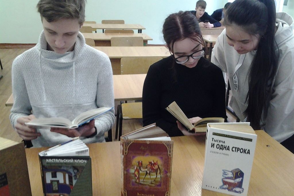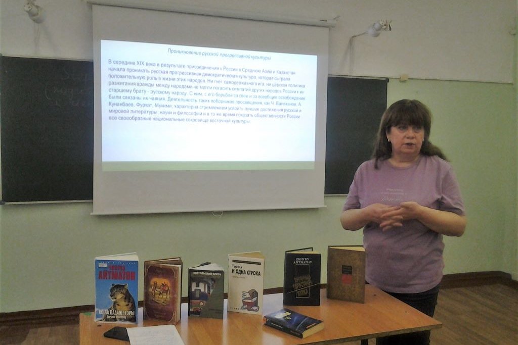 Демонстрируя электронную презентацию о литературе Средней Азии, библиотекари рассказали, что на территории Средней Азии жили народы с различным культурным уровнем. Одни (таджики и узбеки) имели в прошлом богатую городскую культуру, в том числе развитую литературу, лучшие представители которой пользовались мировой славой (персидско-таджикские классики Фирдоуси, Омар Хайям, Джами, узбек Навои), другие (туркмены, казахи и киргизы) вели кочевой образ жизни, у них развивалось прежде всего устное народное творчество. В середине XIX века произошло присоединение народов Средней Азии и Казахстана к России. В этот регион начала проникать русская культура, наука, развиваются просветительские и демократические идеи. Деятельность таких просветителей, как Ч. Валиханов, А. Дониш, А. Кунанбаев, Фуркат, Мукими характерна стремлением усвоить лучшие достижения русской и мировой литературы, науки и философии и в то же время показать общественности России все национальные сокровища восточной культуры.