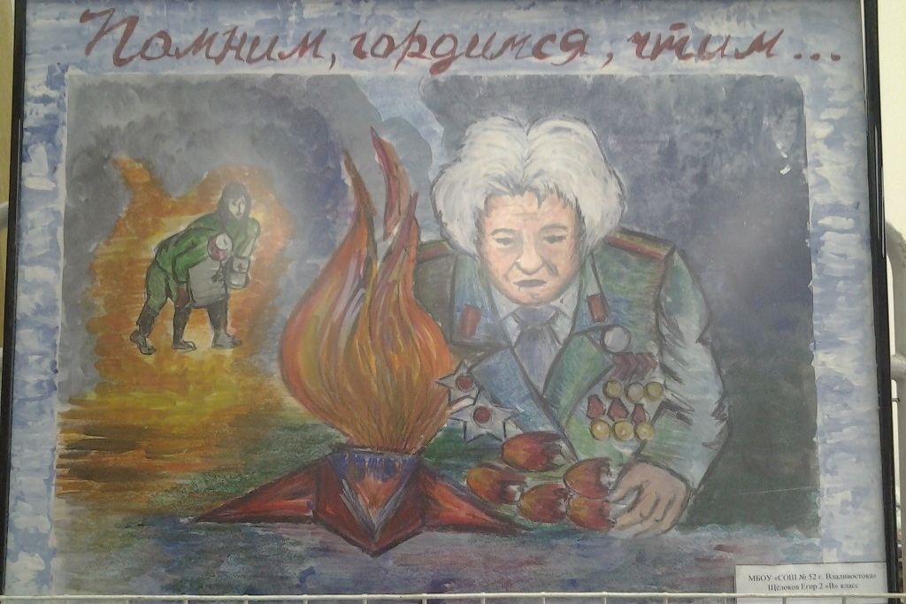 Своими рисунками ребята показали, что подвиг их прадедов не забыт и поколение за поколением будет помнить и хранить память о войне и о людях завоевавших Победу.