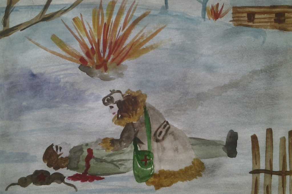 Подвиг военных медиков и медсестер отразила в своем рисунке Сенькаева Карина.